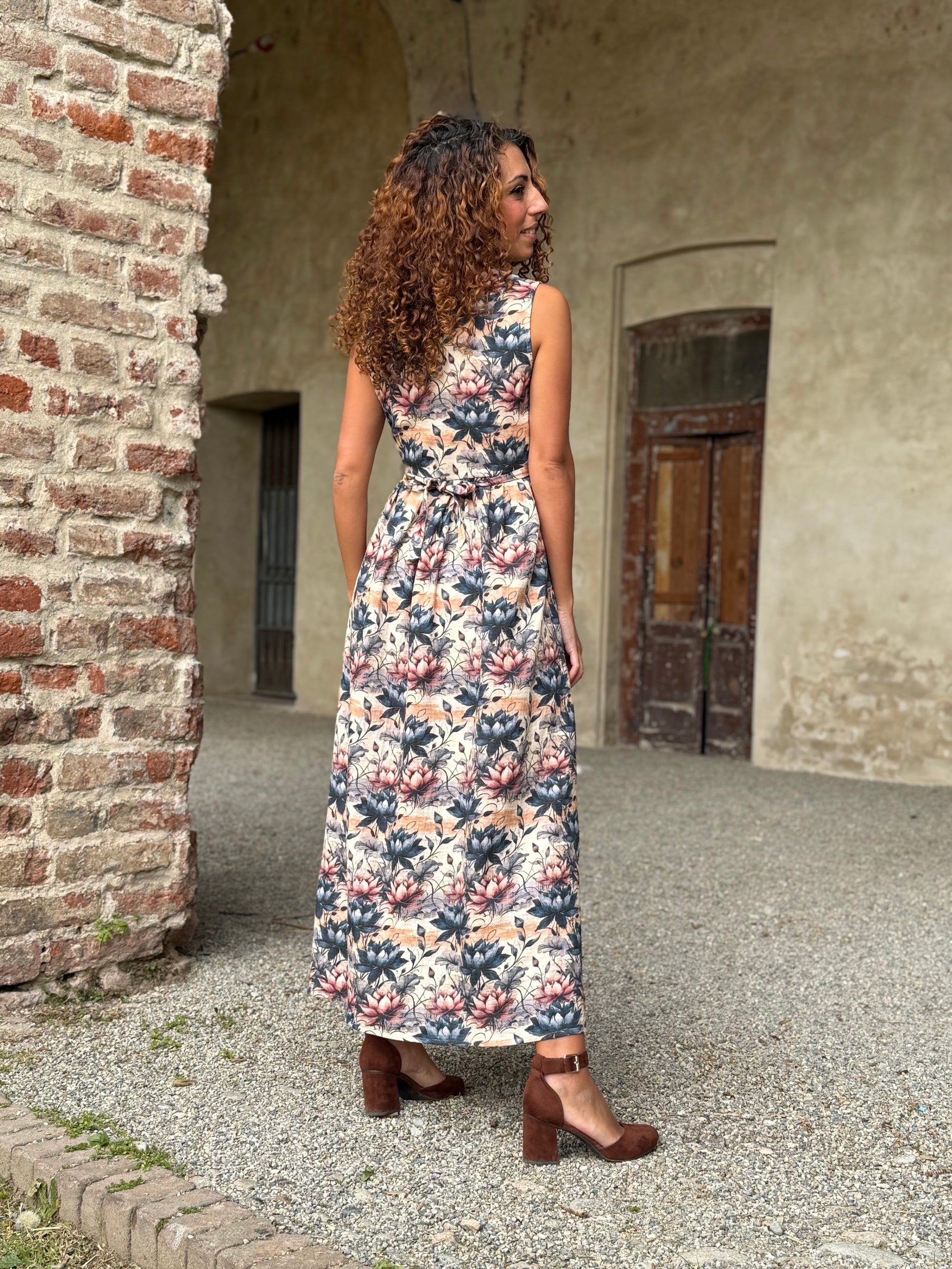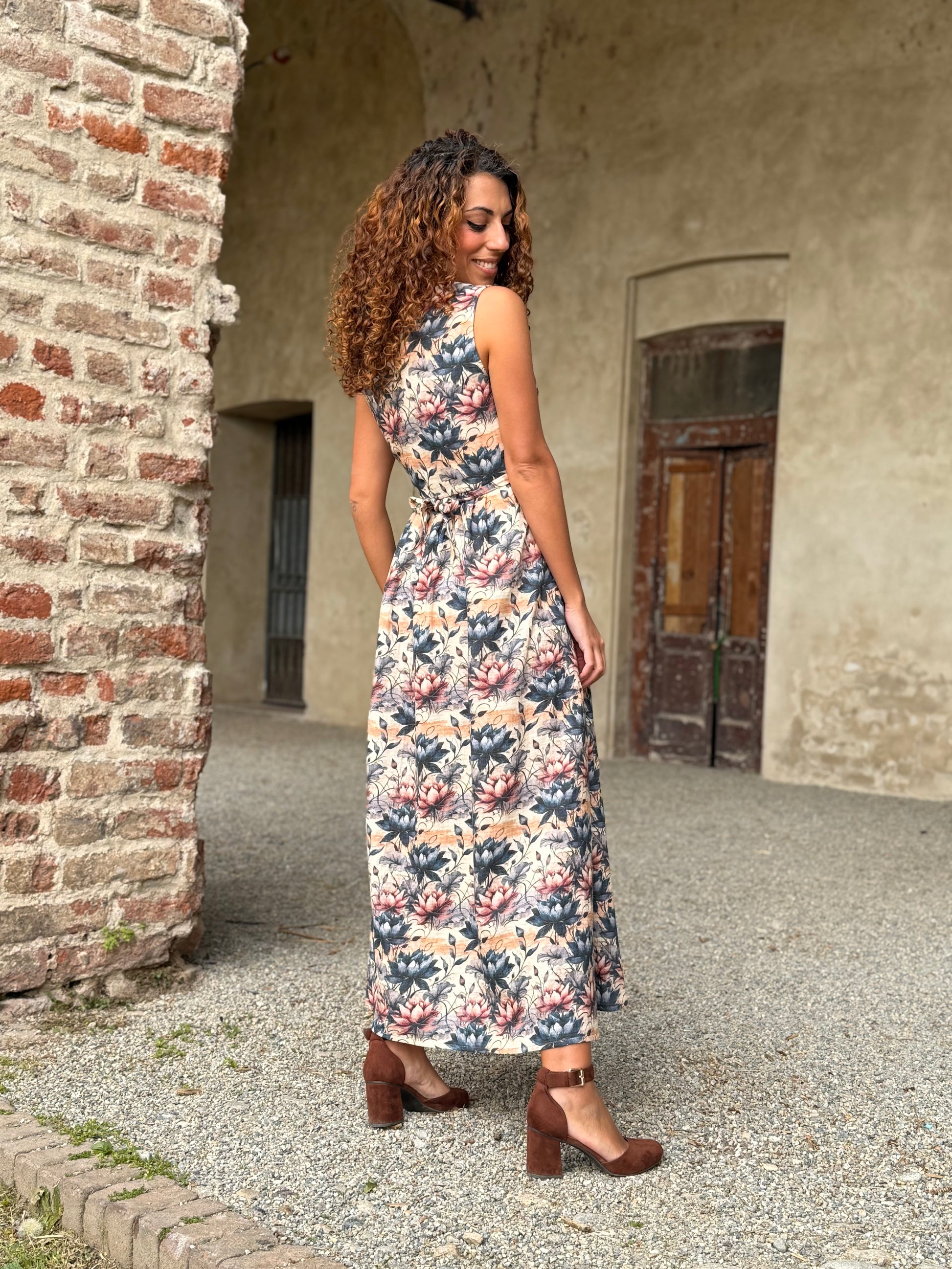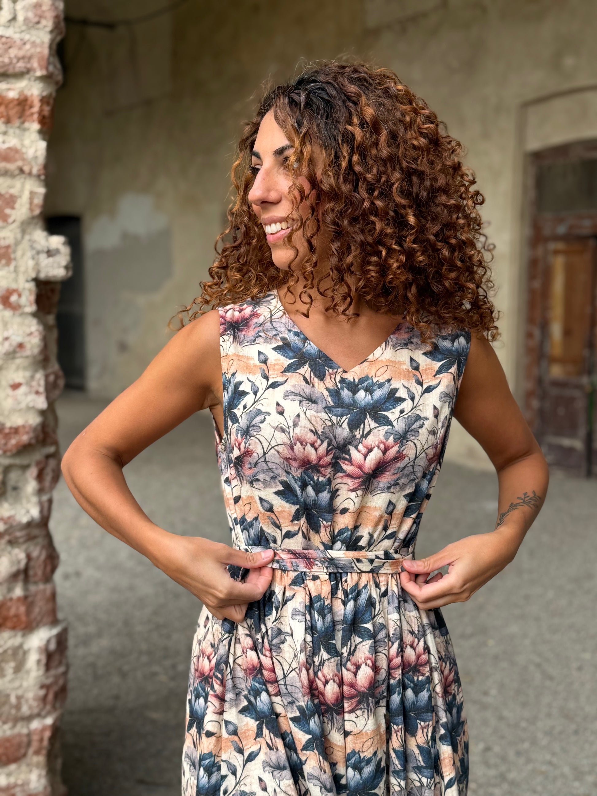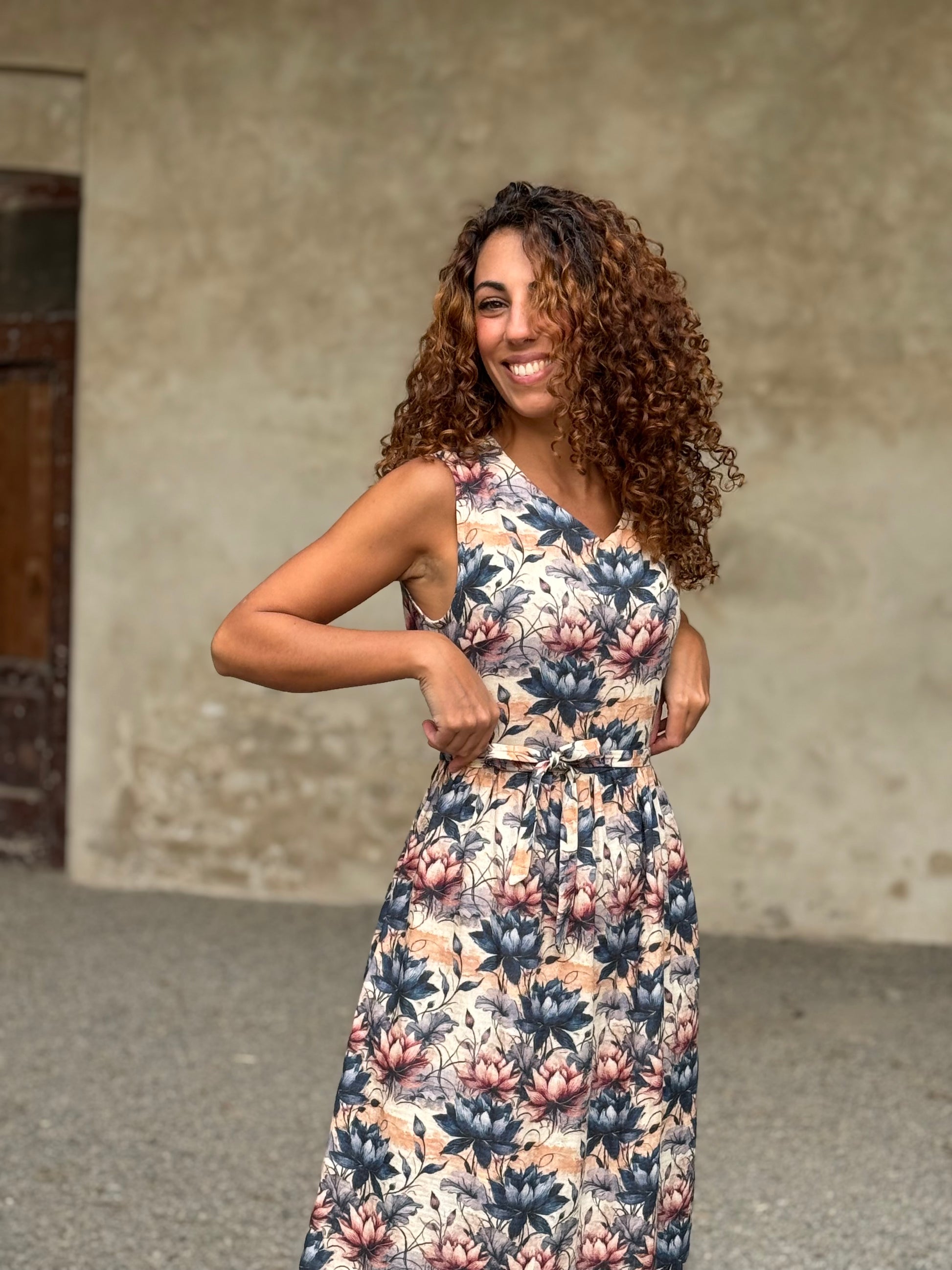 Nuvola è quell’abito che ti trasporta in una favola, delinea la figura con comodità e respiro lasciando decidere a te la vestibilità di cui hai bisogno grazie alla cinturina da annodare come preferisci.