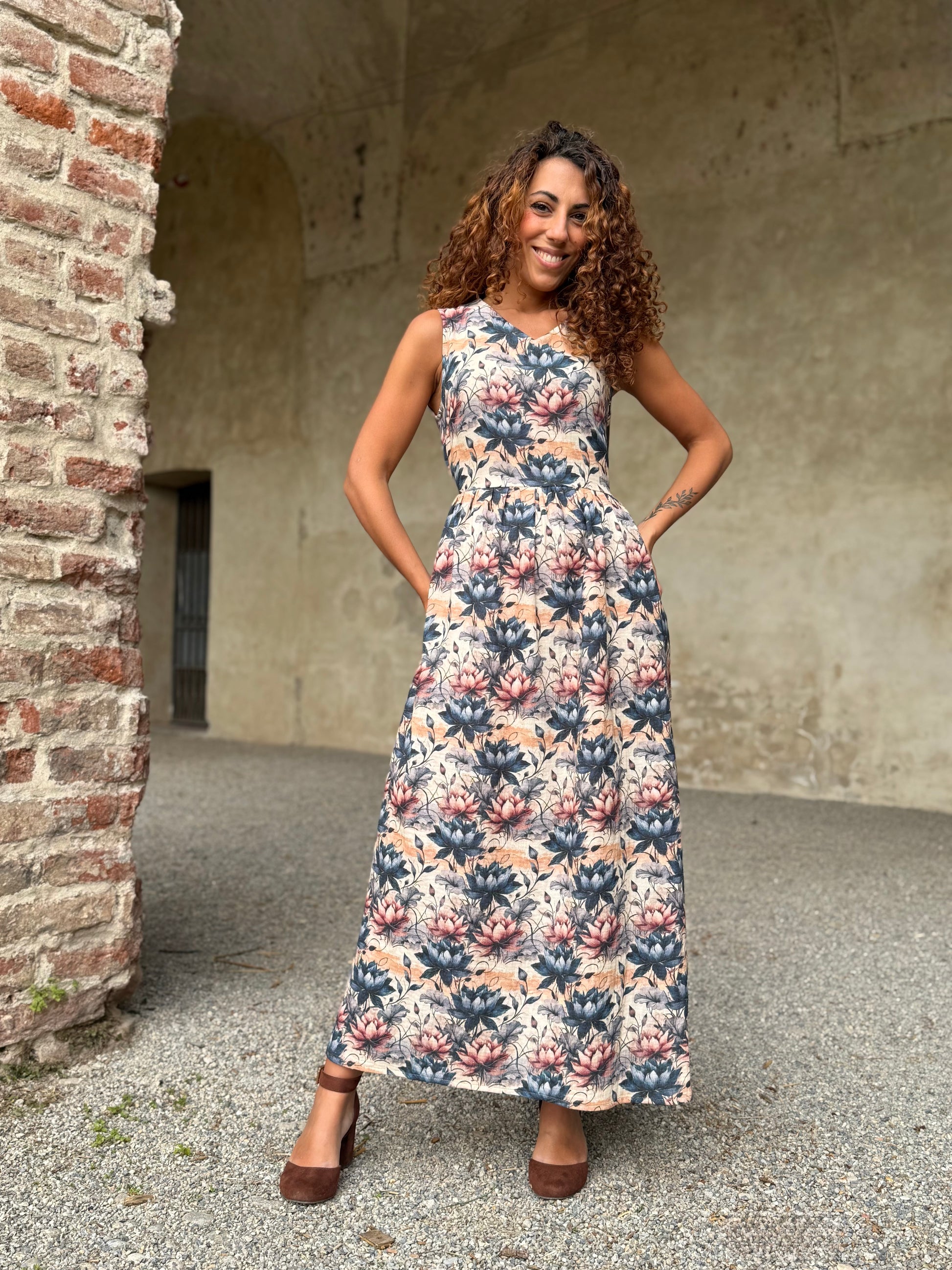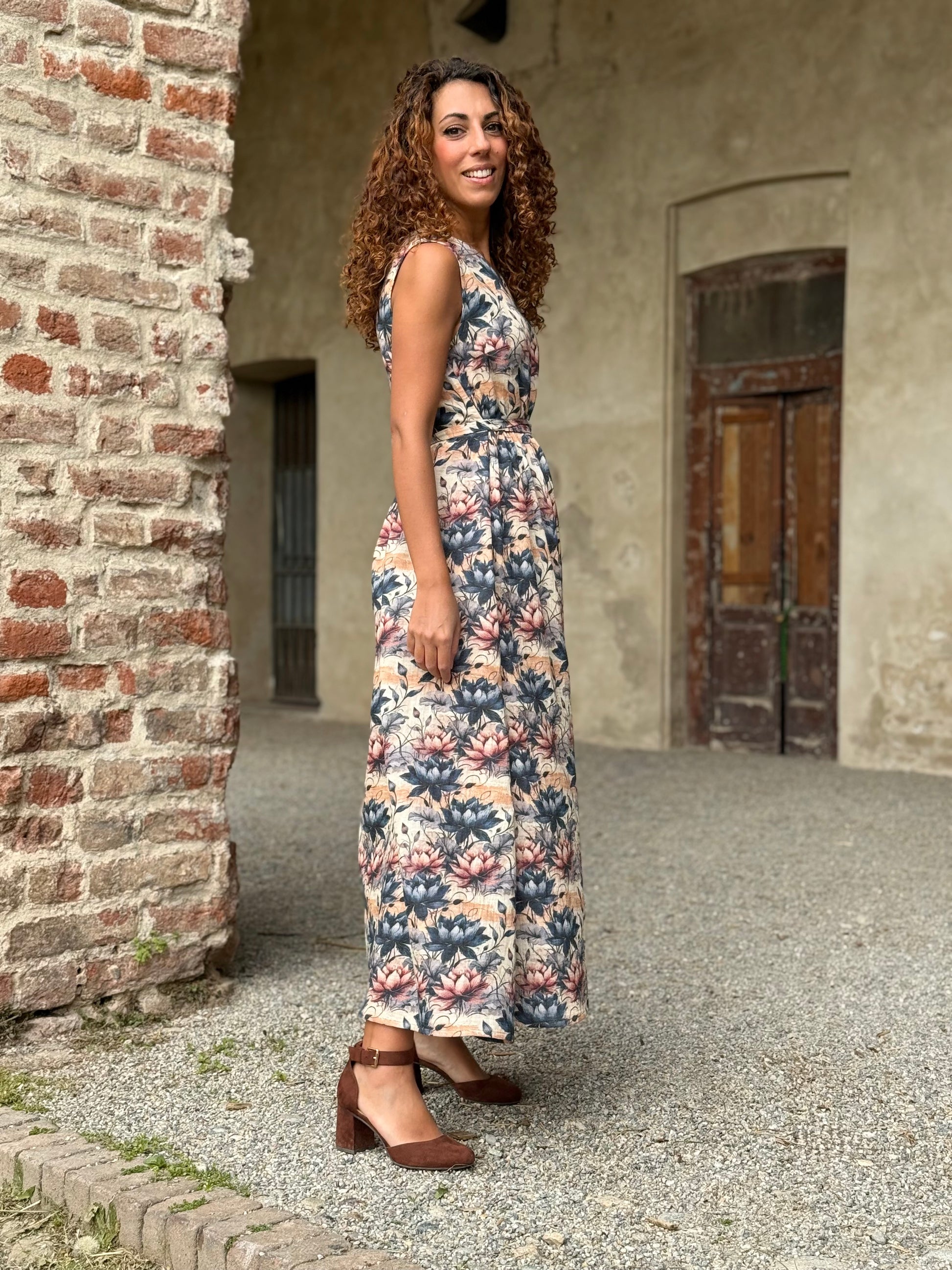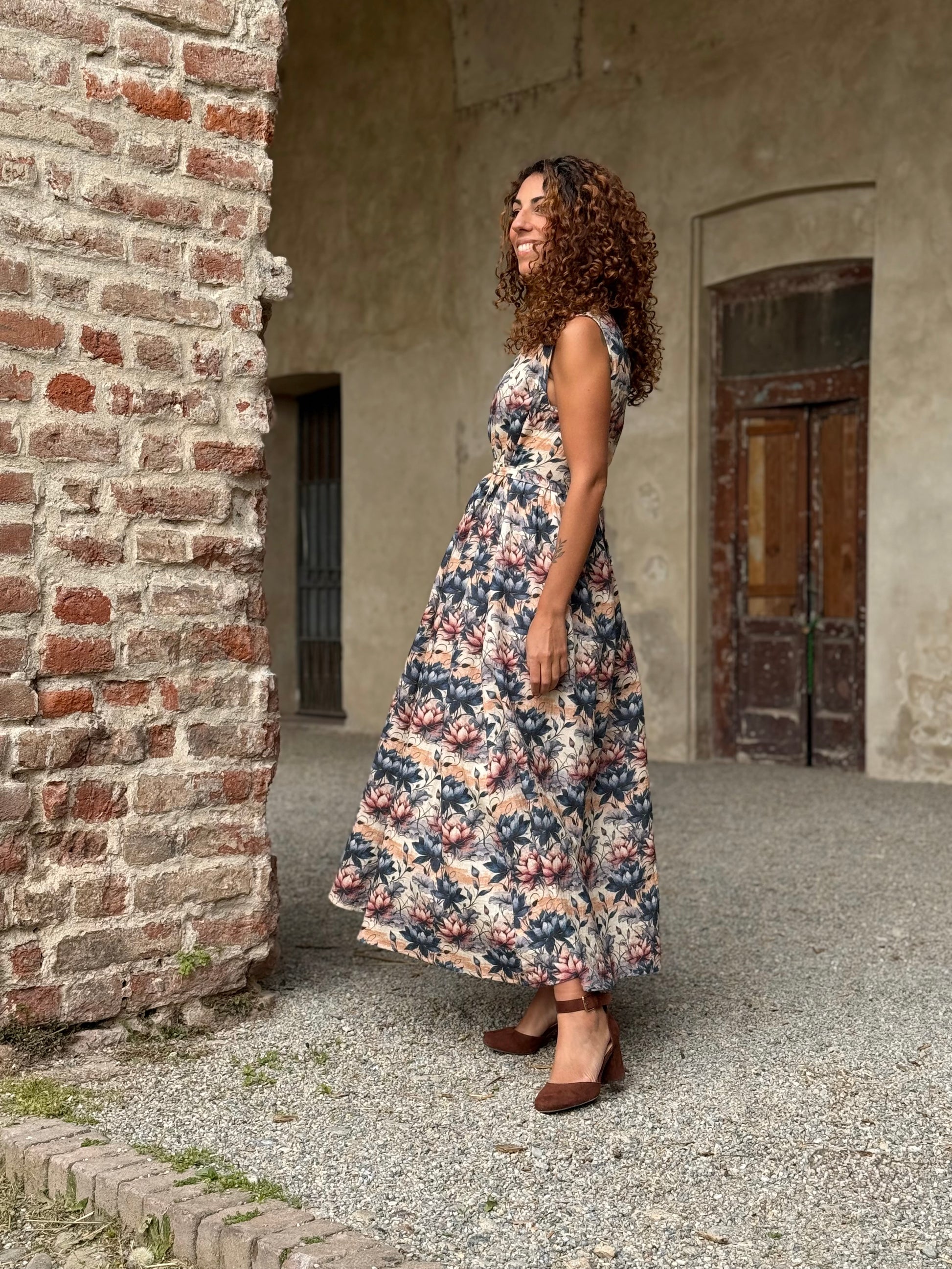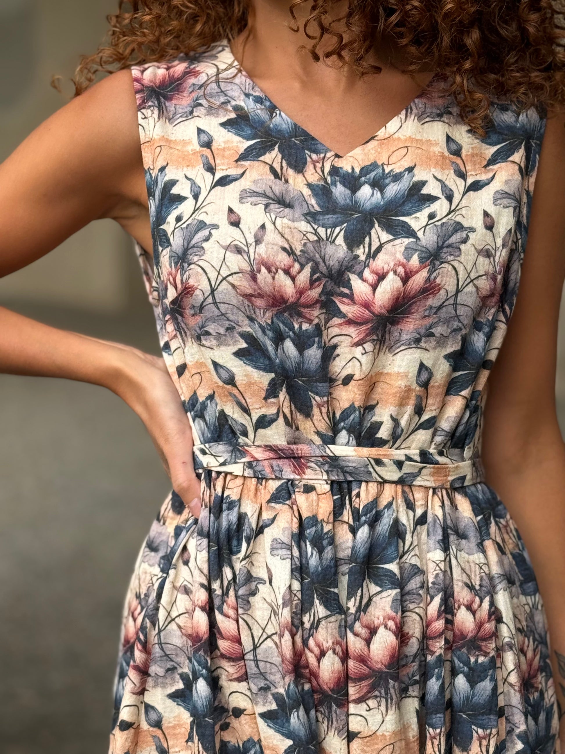 Nuvola è quell’abito che ti trasporta in una favola, delinea la figura con comodità e respiro lasciando decidere a te la vestibilità di cui hai bisogno grazie alla cinturina da annodare come preferisci.