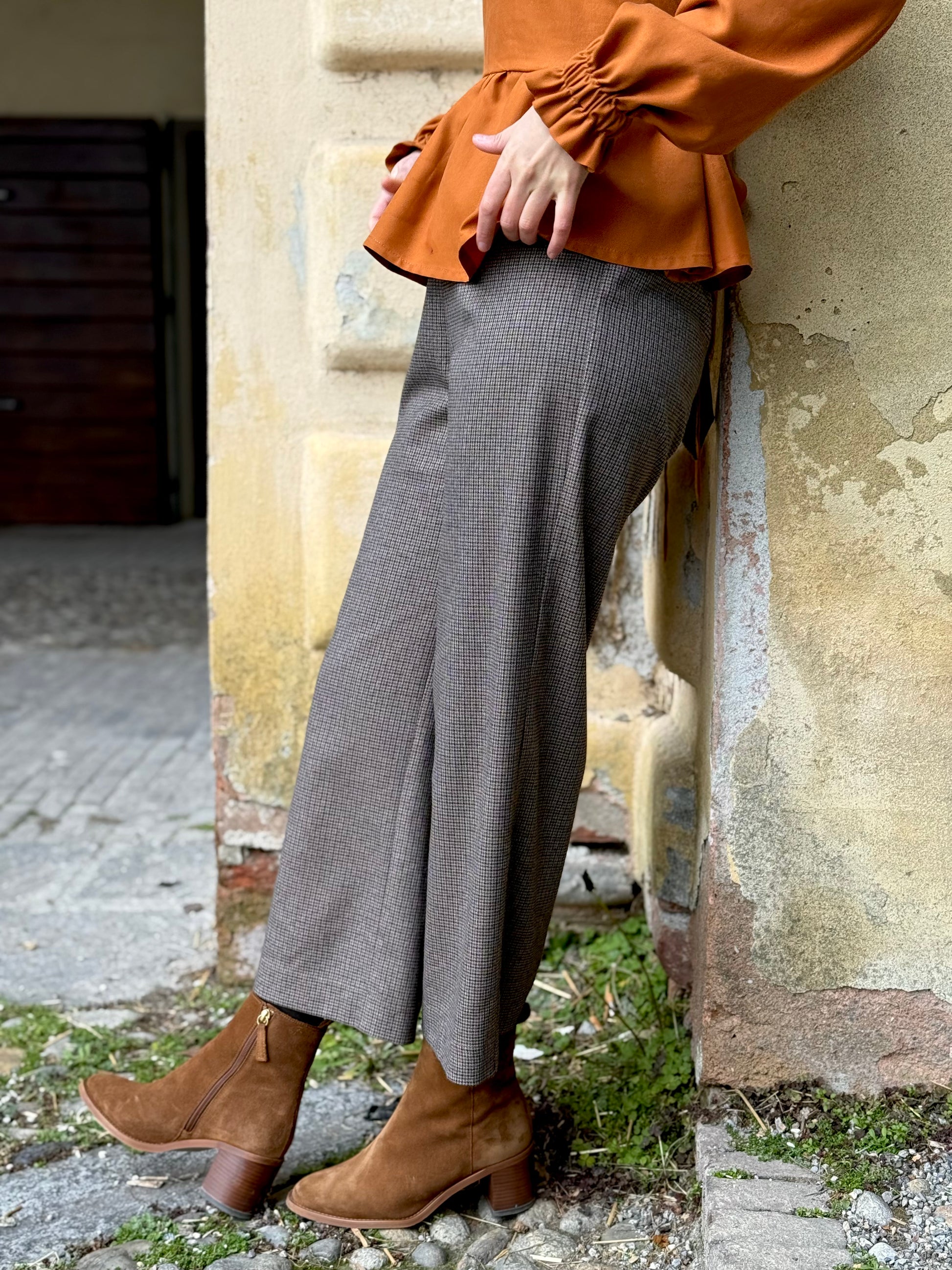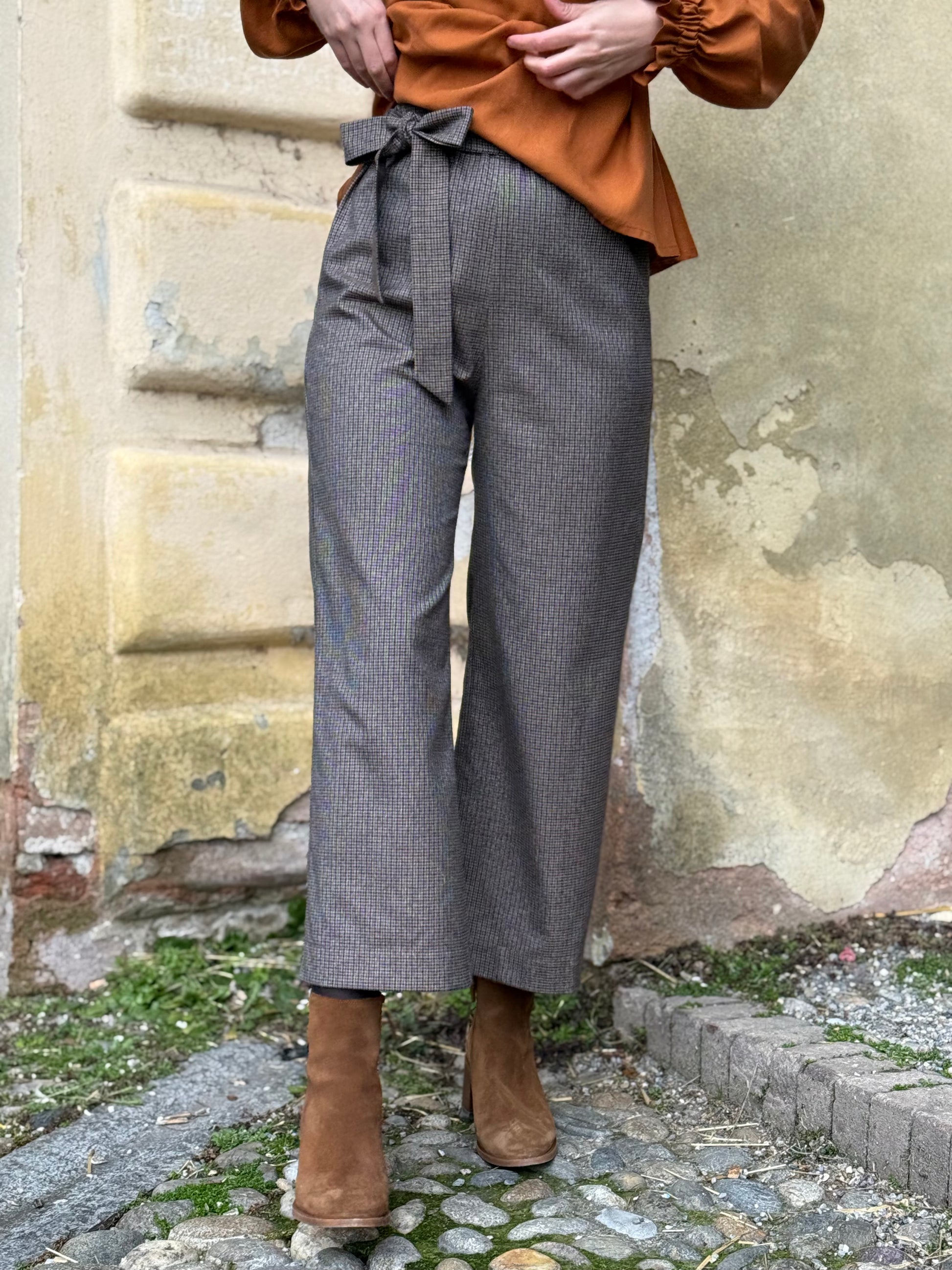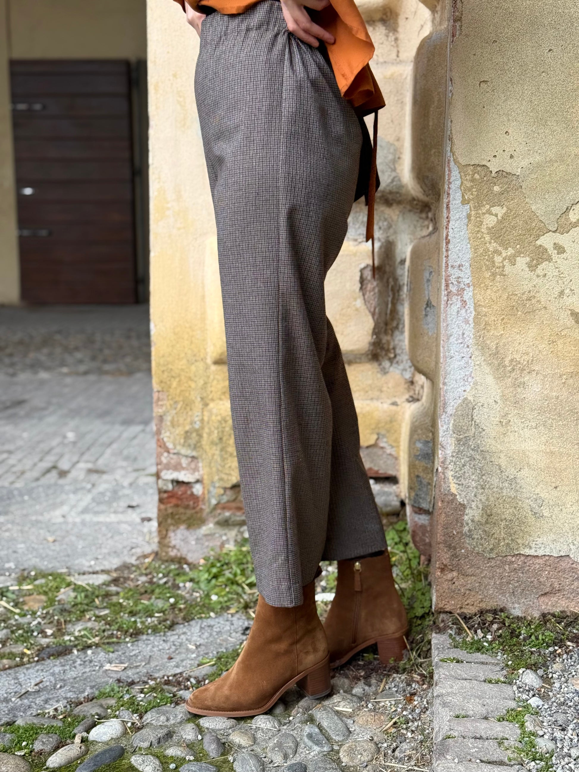 Il pantalone immancabile nel guardaroba. Vita elasticizzata, fianchi delineati e una gamba ampia ma non troppo, per esprimere un look dinamico, comodo e sempre elegante.