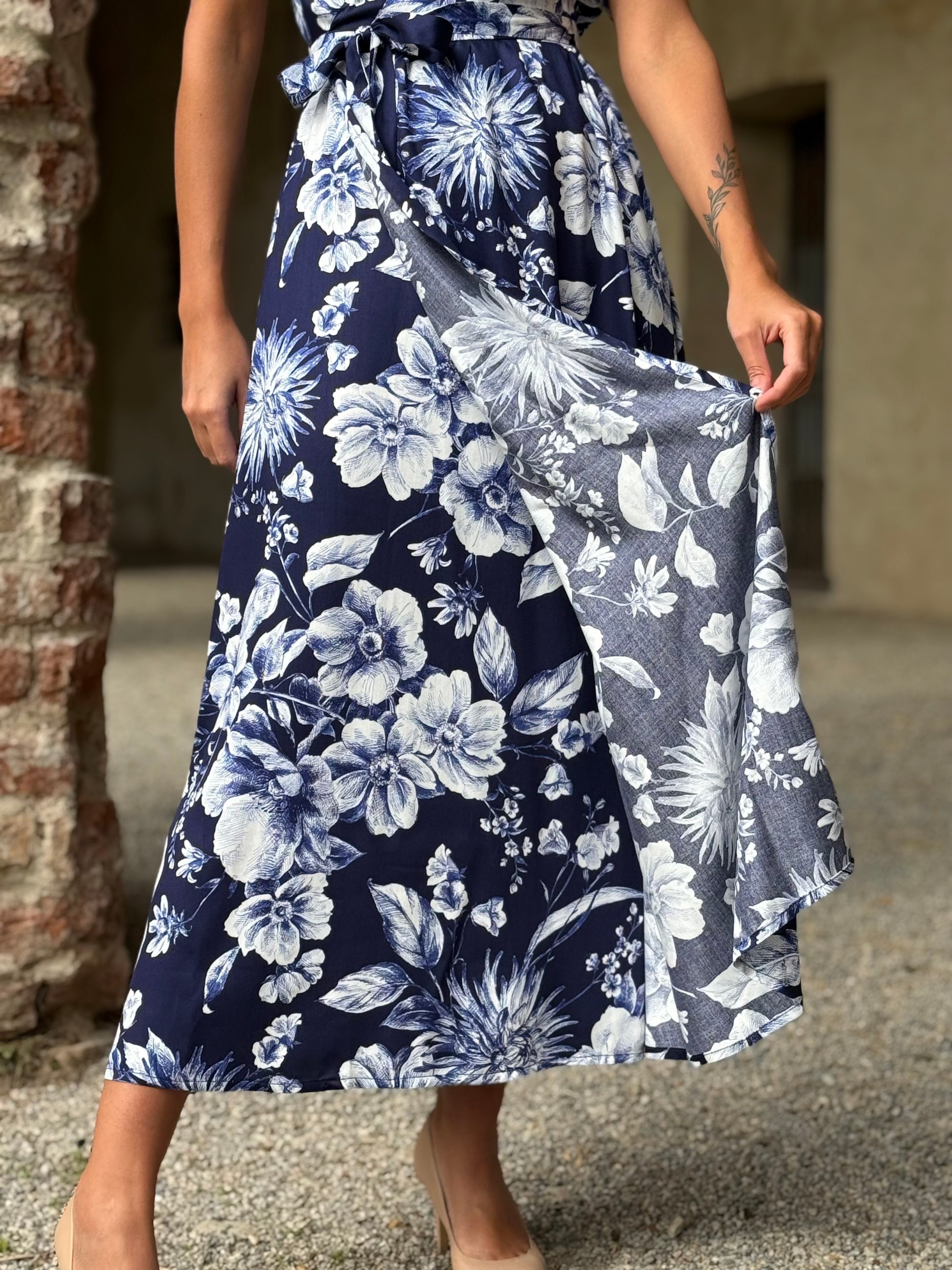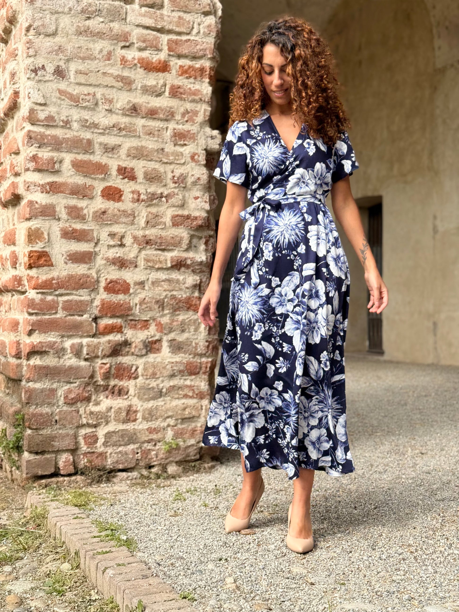 Un abito che avvolge il corpo con naturale armonia, seguendone i movimenti con leggerezza e grazia. Il design a portafoglio, essenziale e femminile, definisce il punto vita con delicatezza, lasciando libertà e comfort.