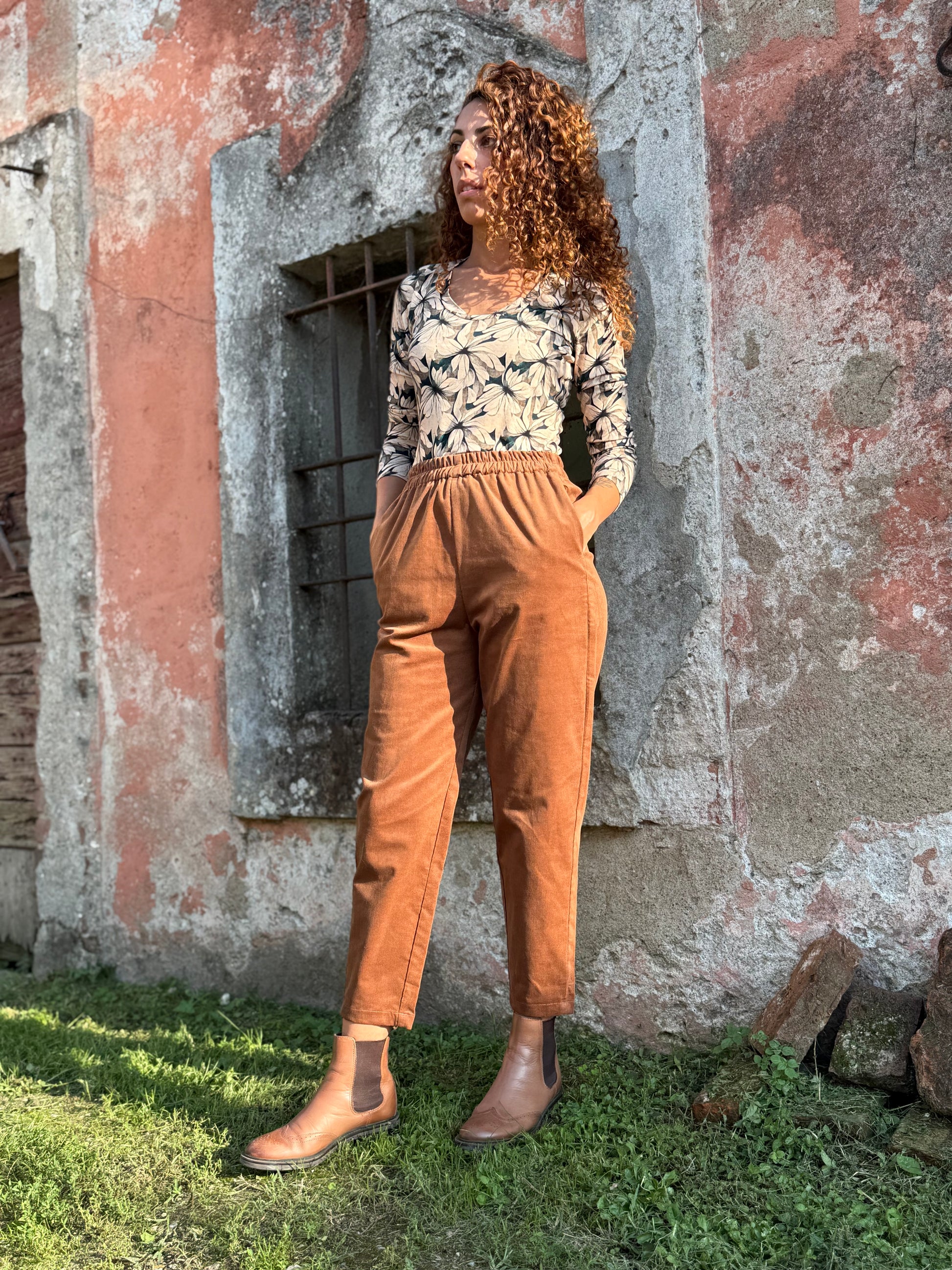 Morbidi sulle cosce e affusolati alla caviglia, l’elastico in vita abbraccia la figura con naturalezza, i pantaloni Carota sono il capo versatile che slancia ed esalta ogni look con eleganza autentica.