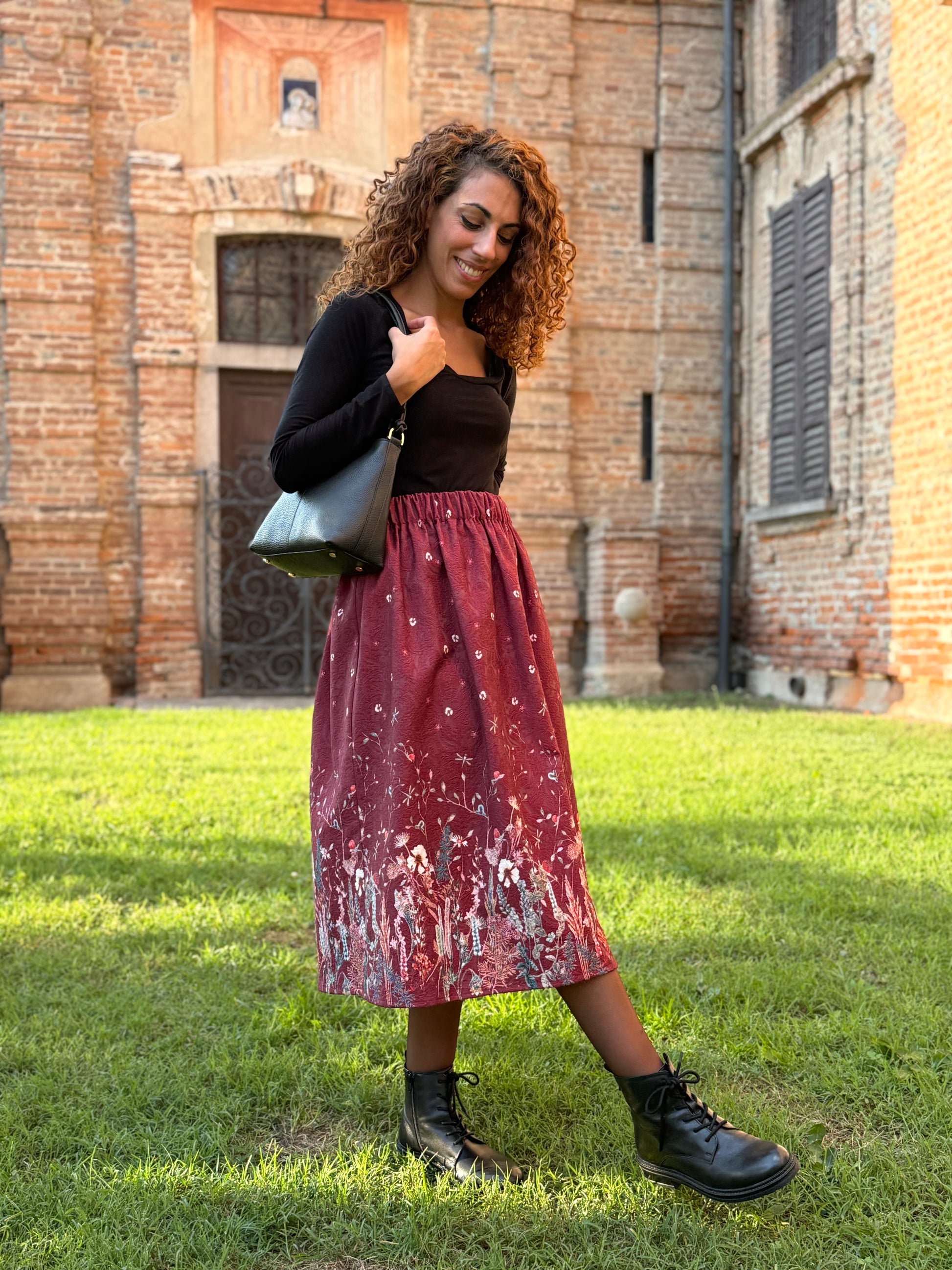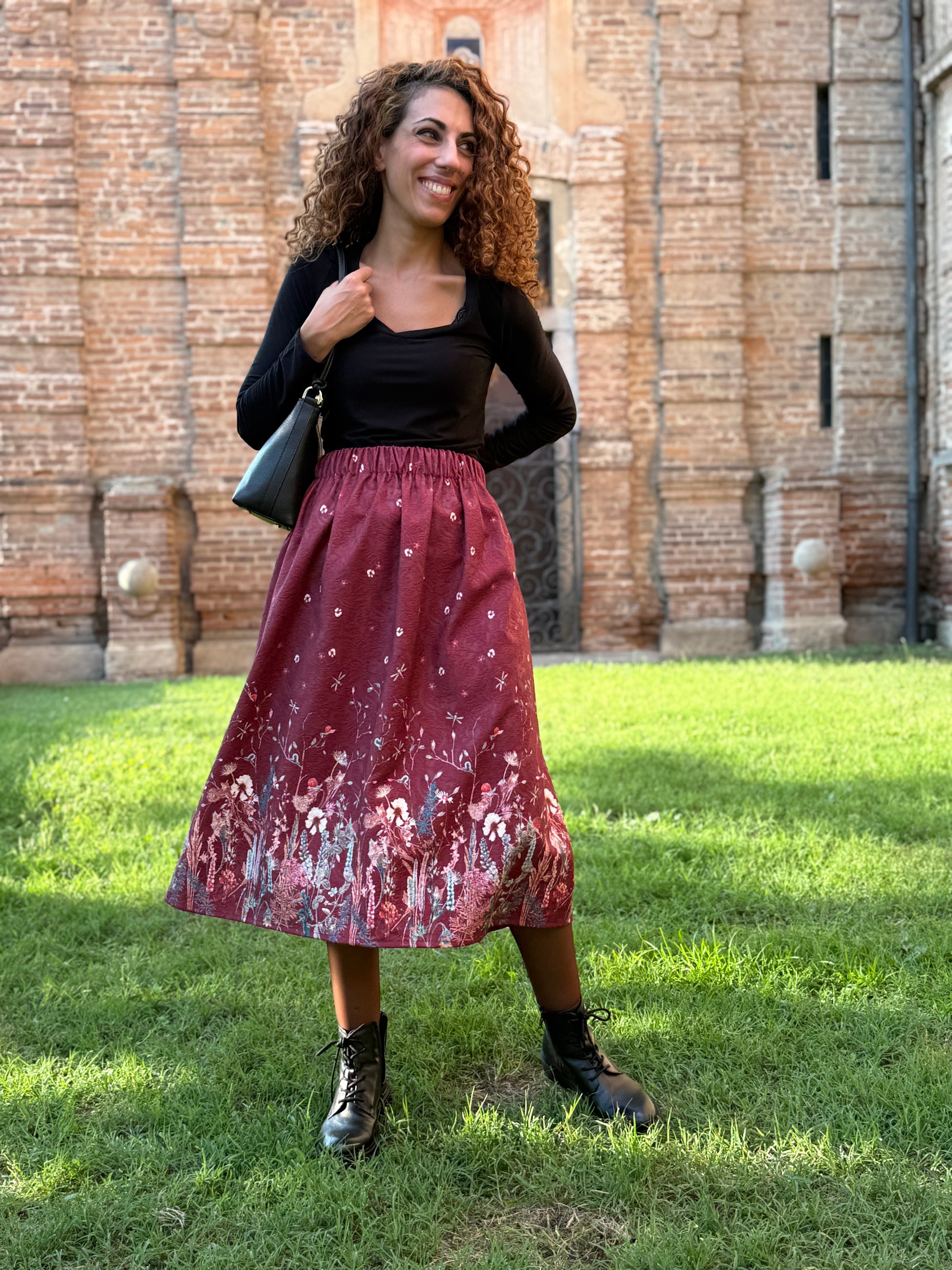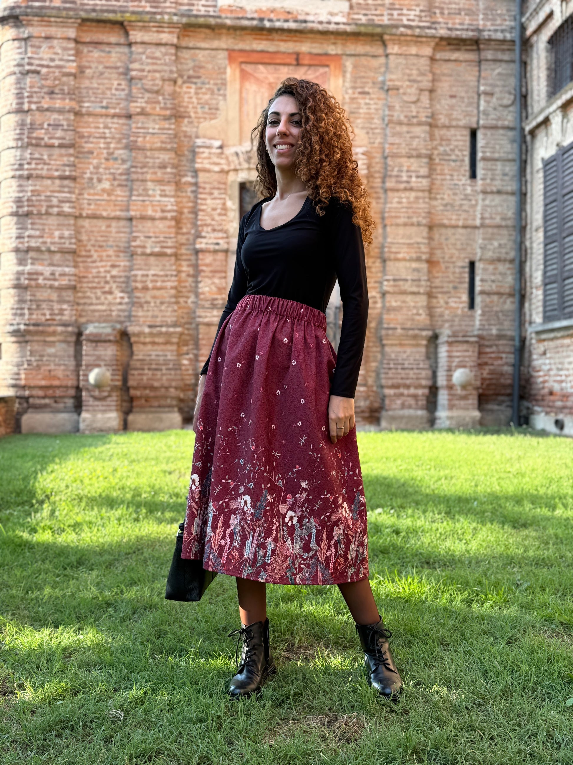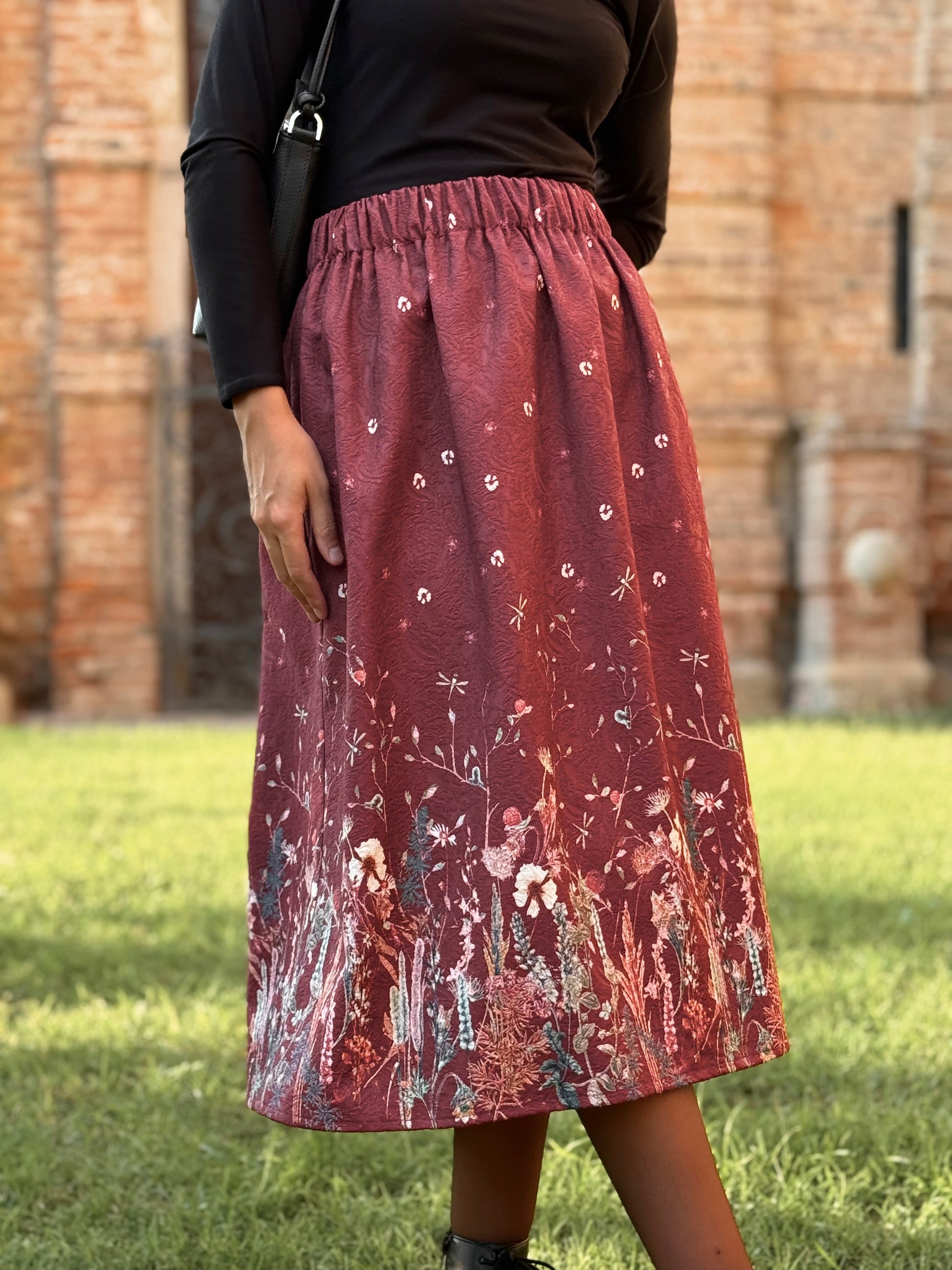 - lunghezza gonna (Essendo un tessuto a pannelli, la lunghezza massima è di 75cm)