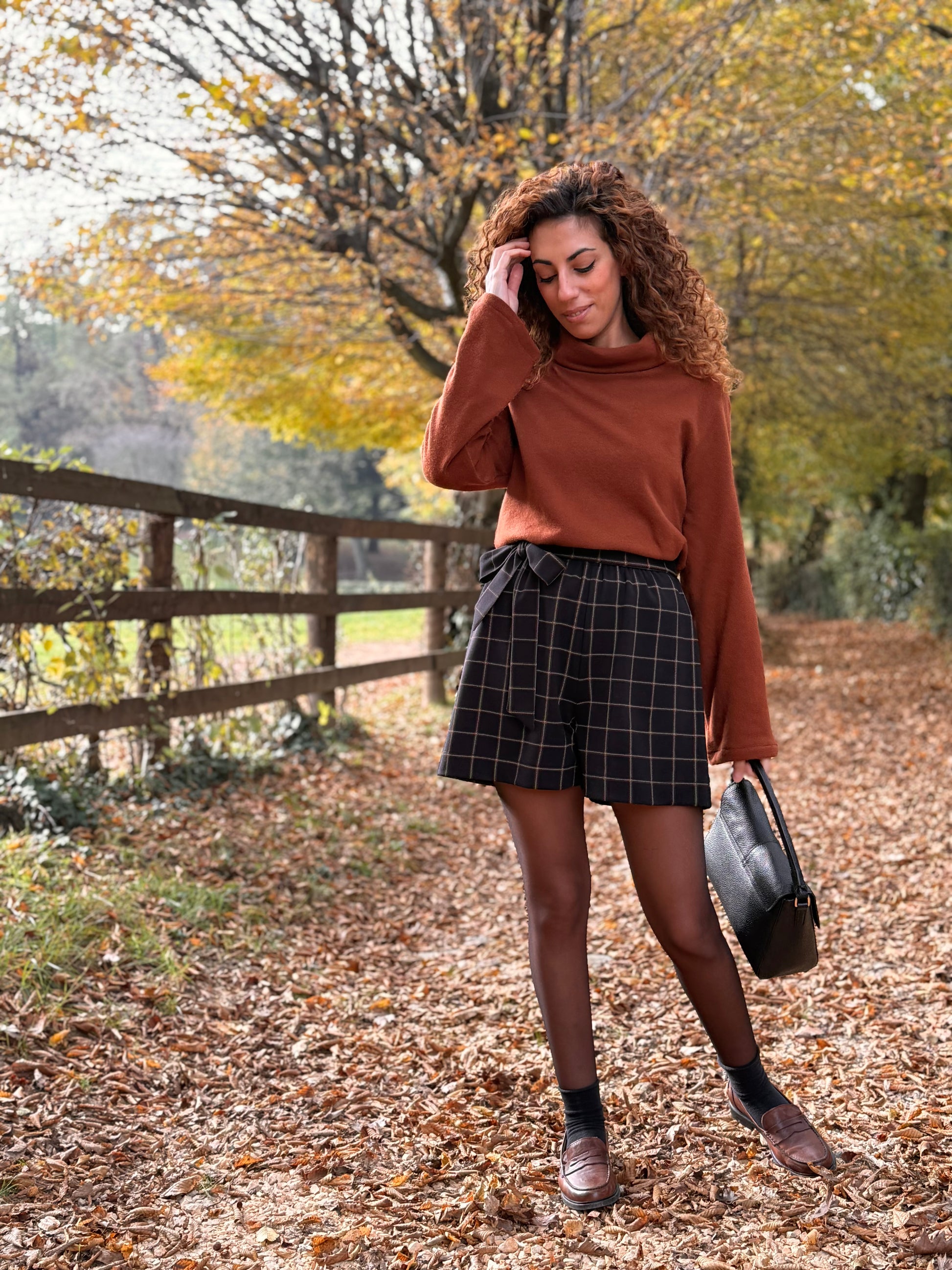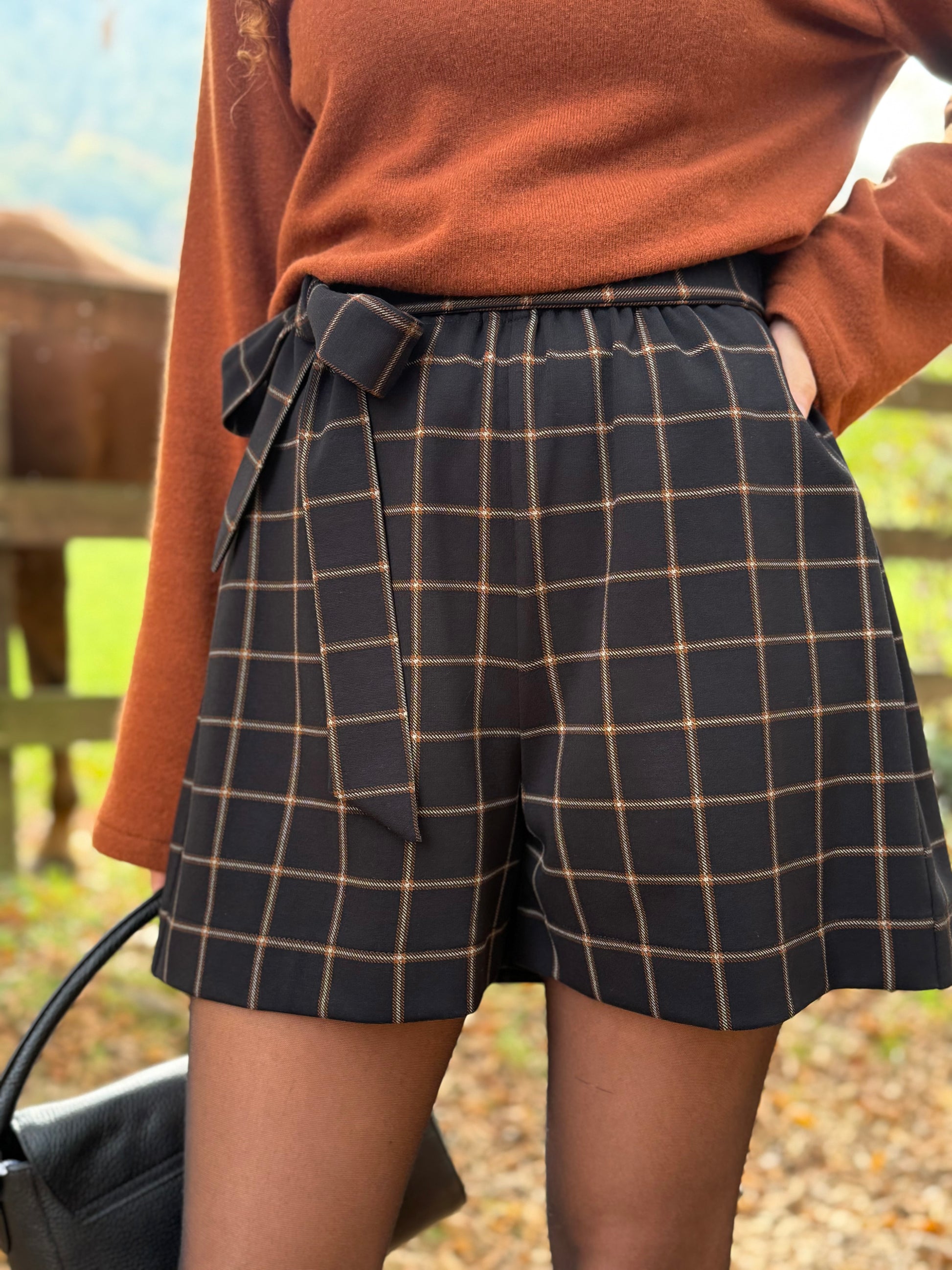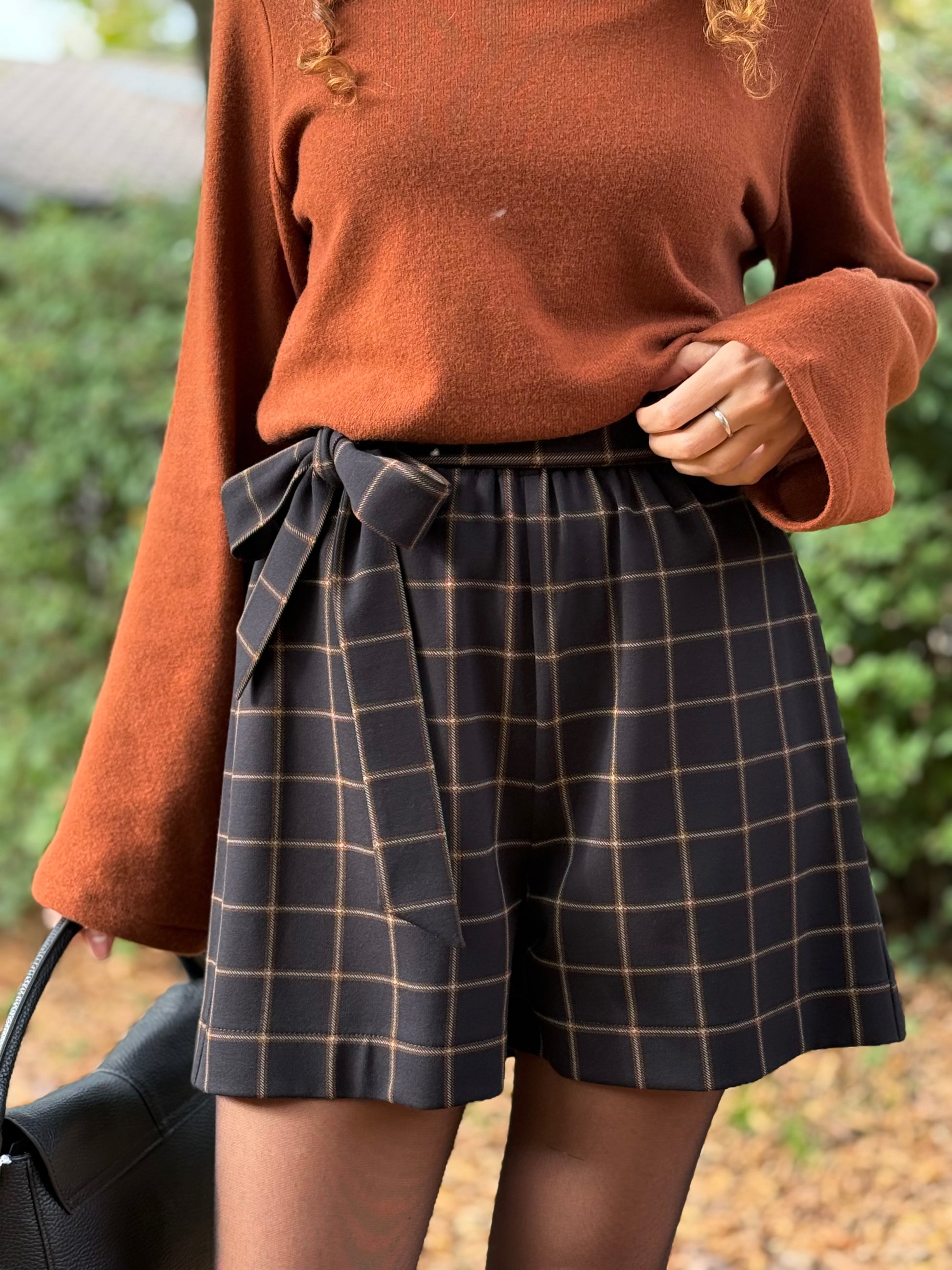 Questi pantaloncini lasciano scoperte solo le gambe, l’elastico in vita assicura una pratica vestibilità e la cinturina delinea delicatamente il punto vita, annodandola sul fianco o dietro.