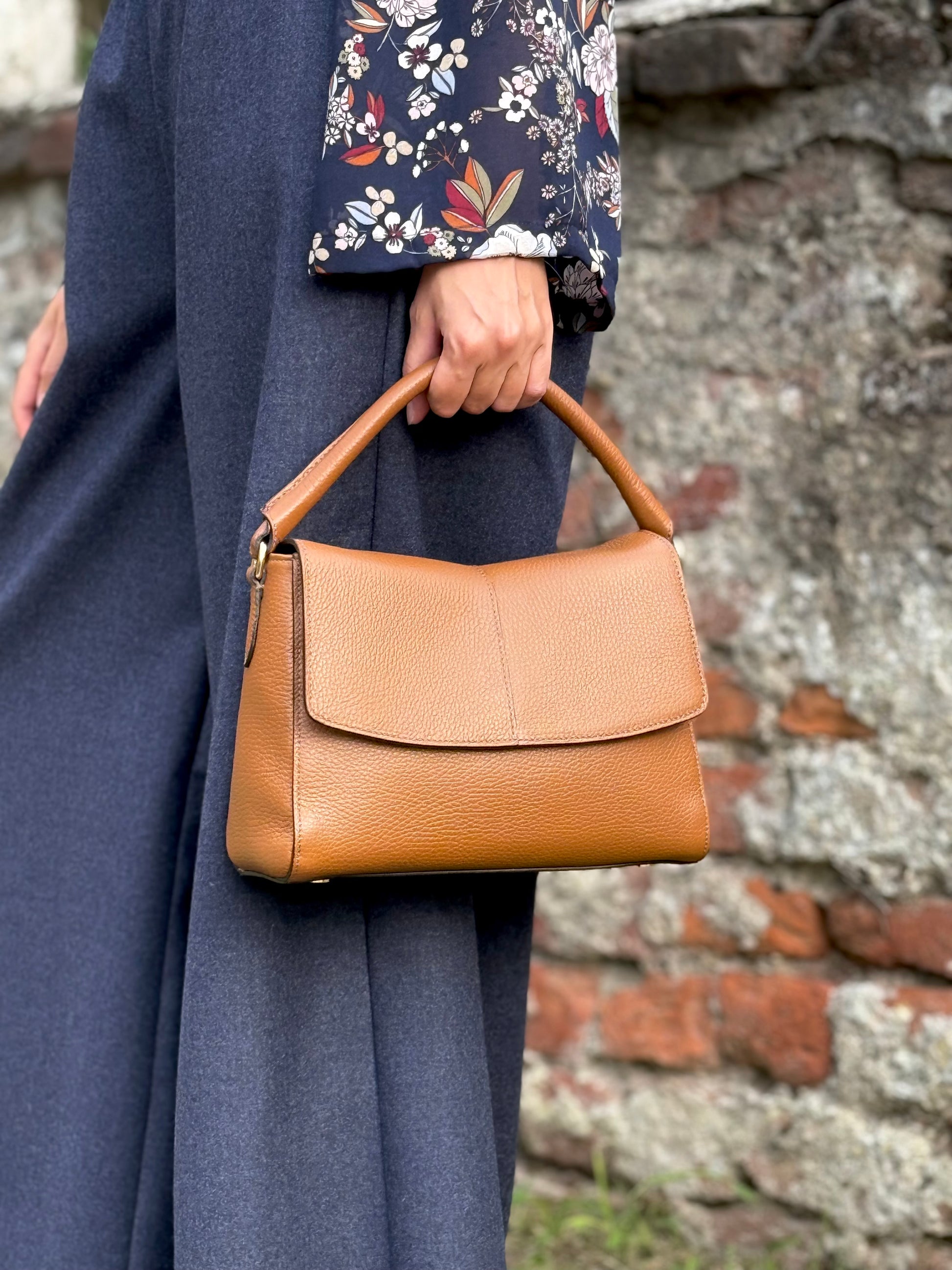 Realizzata a mano con pellame di alta qualità, questa borsa unisce eleganza e funzionalità in un design senza tempo. La pelle martellata esalta la naturale bellezza del materiale, rendendola resistente e piacevole al tatto.