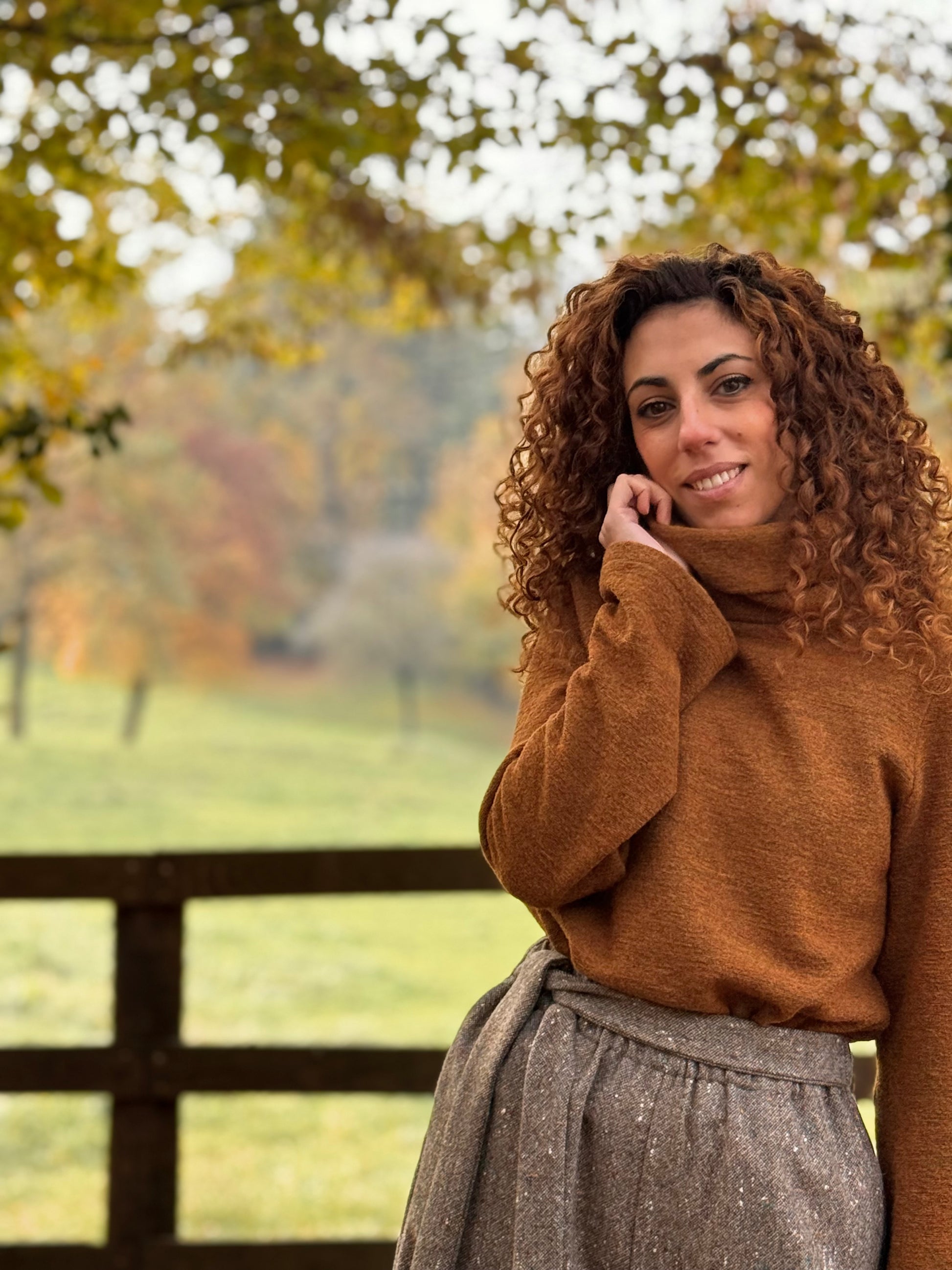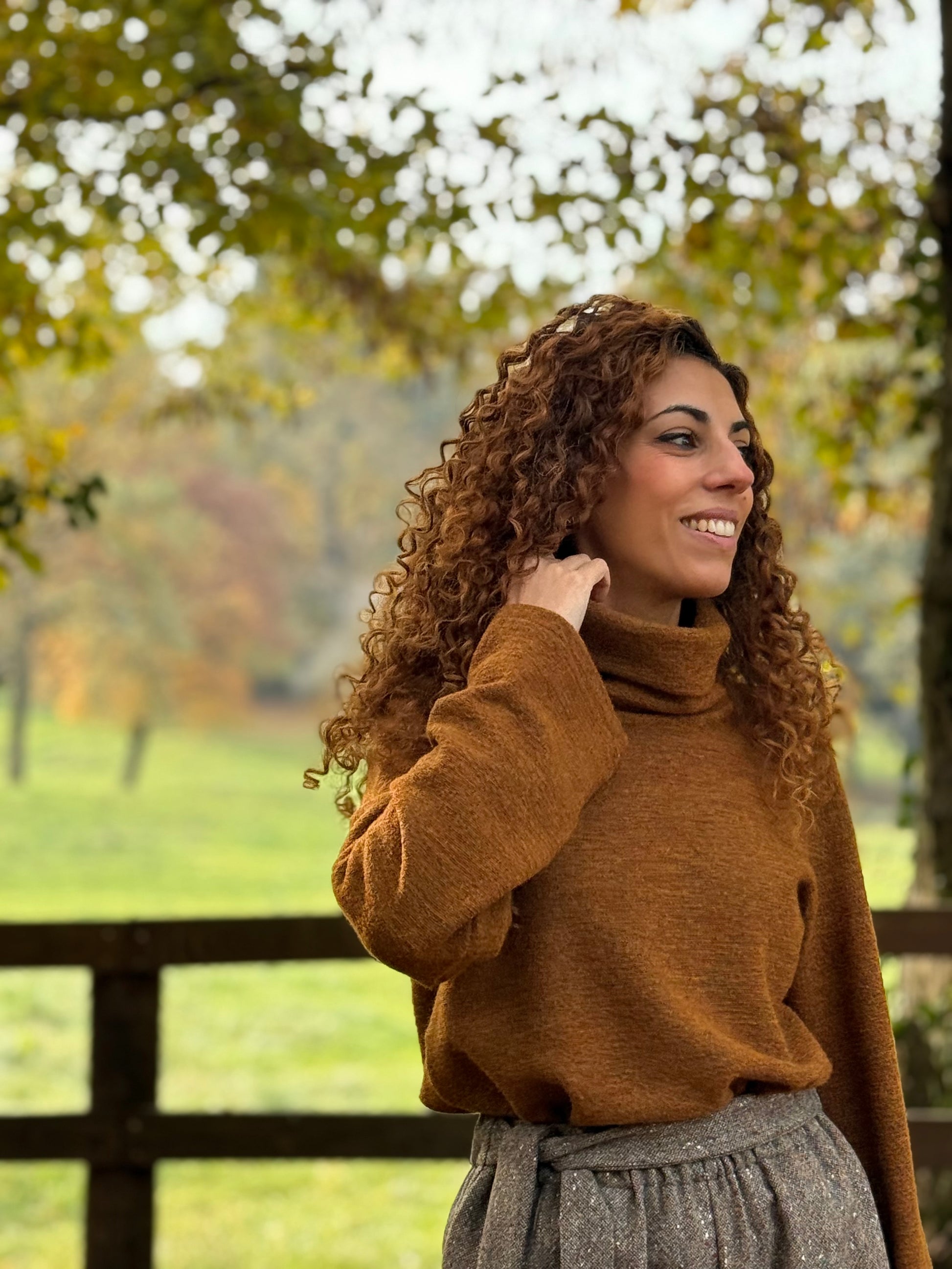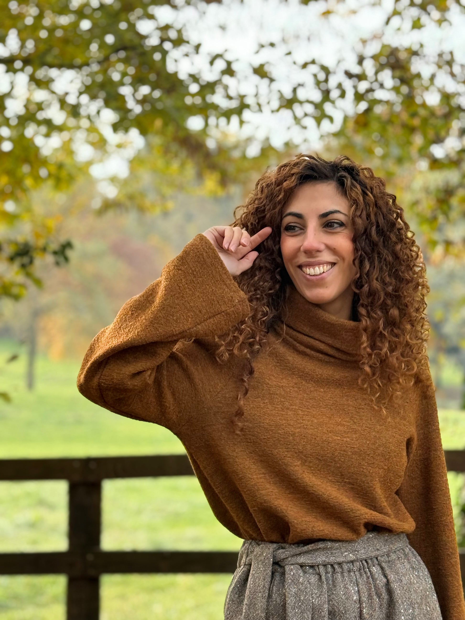 Come un morbido abbraccio, questo maglione avvolge il corpo con una vestibilità ampia e rilassata, caldo e leggero come una carezza.