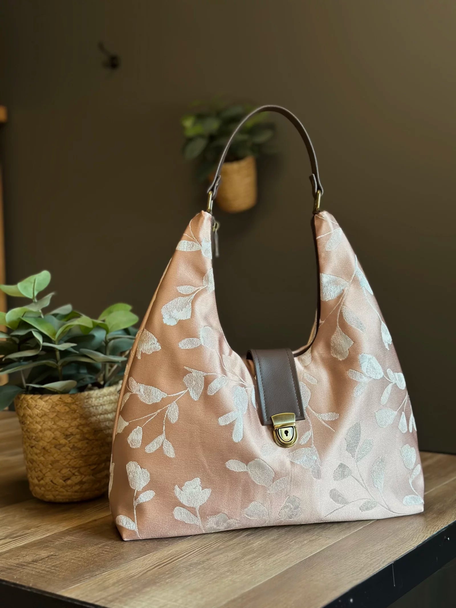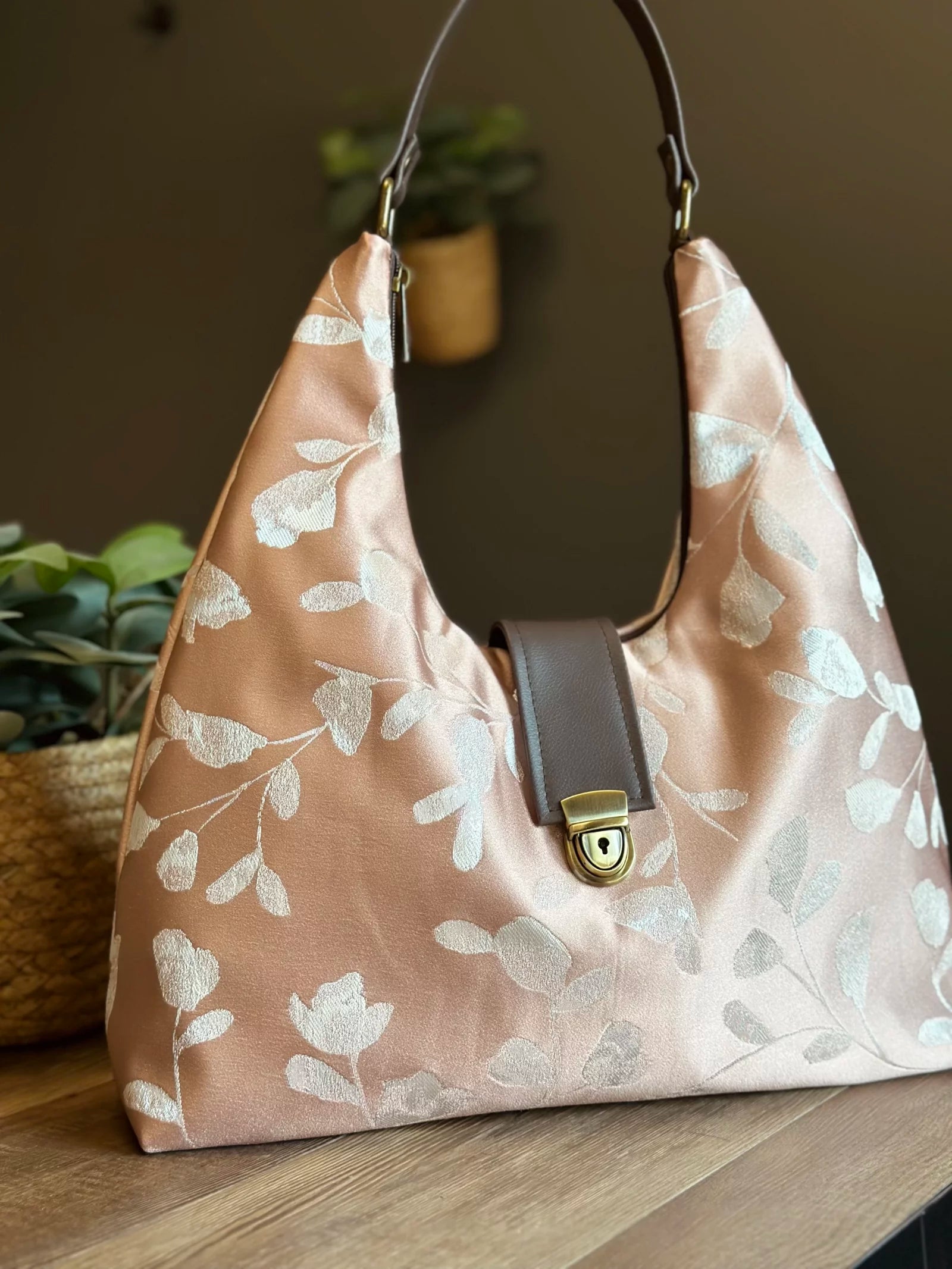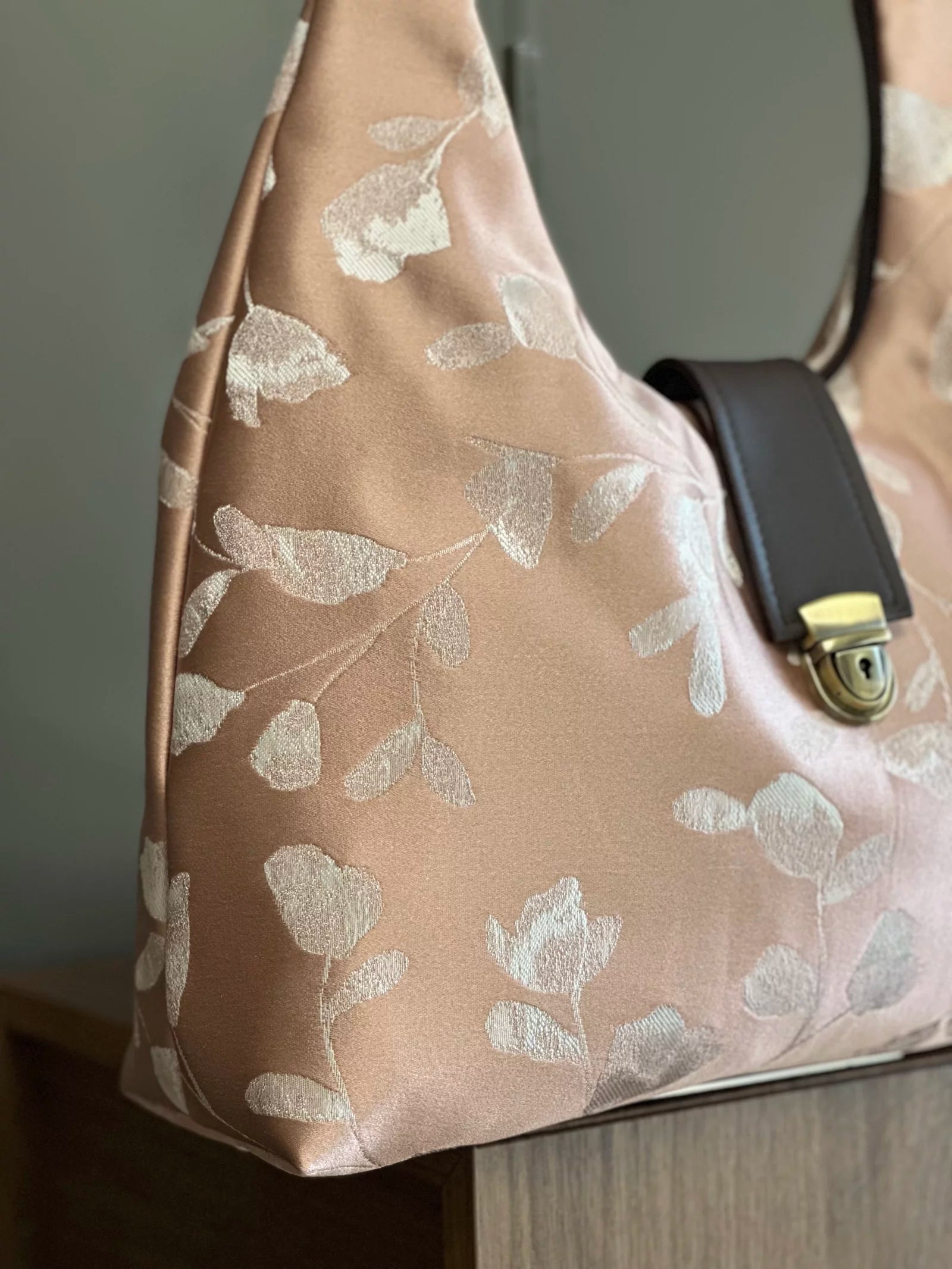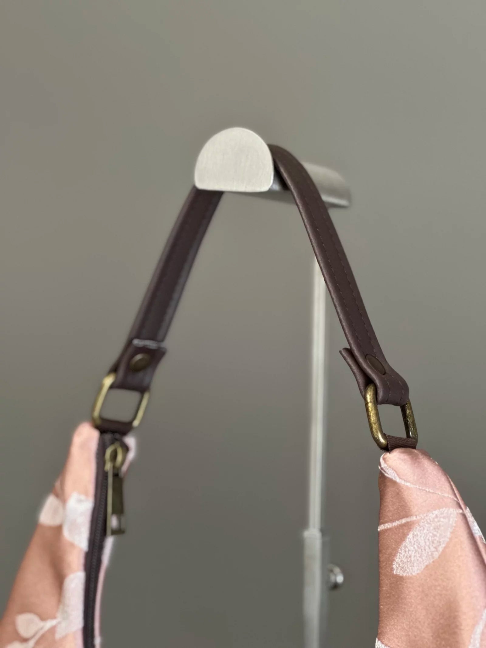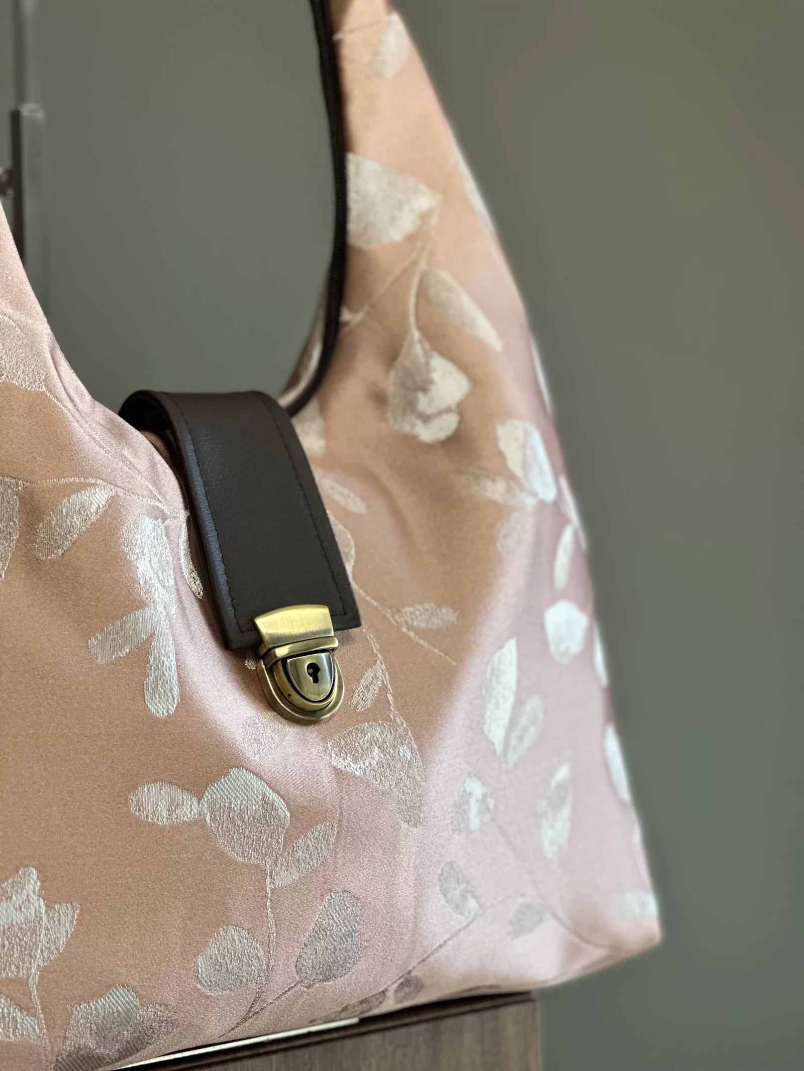 La chiusura con cerniera e il manico in similpelle assicurano comfort e resistenza, ma il tocco distintivo è la raffinata linguetta con chiusura tuc, un dettaglio di classe che fa la differenza.