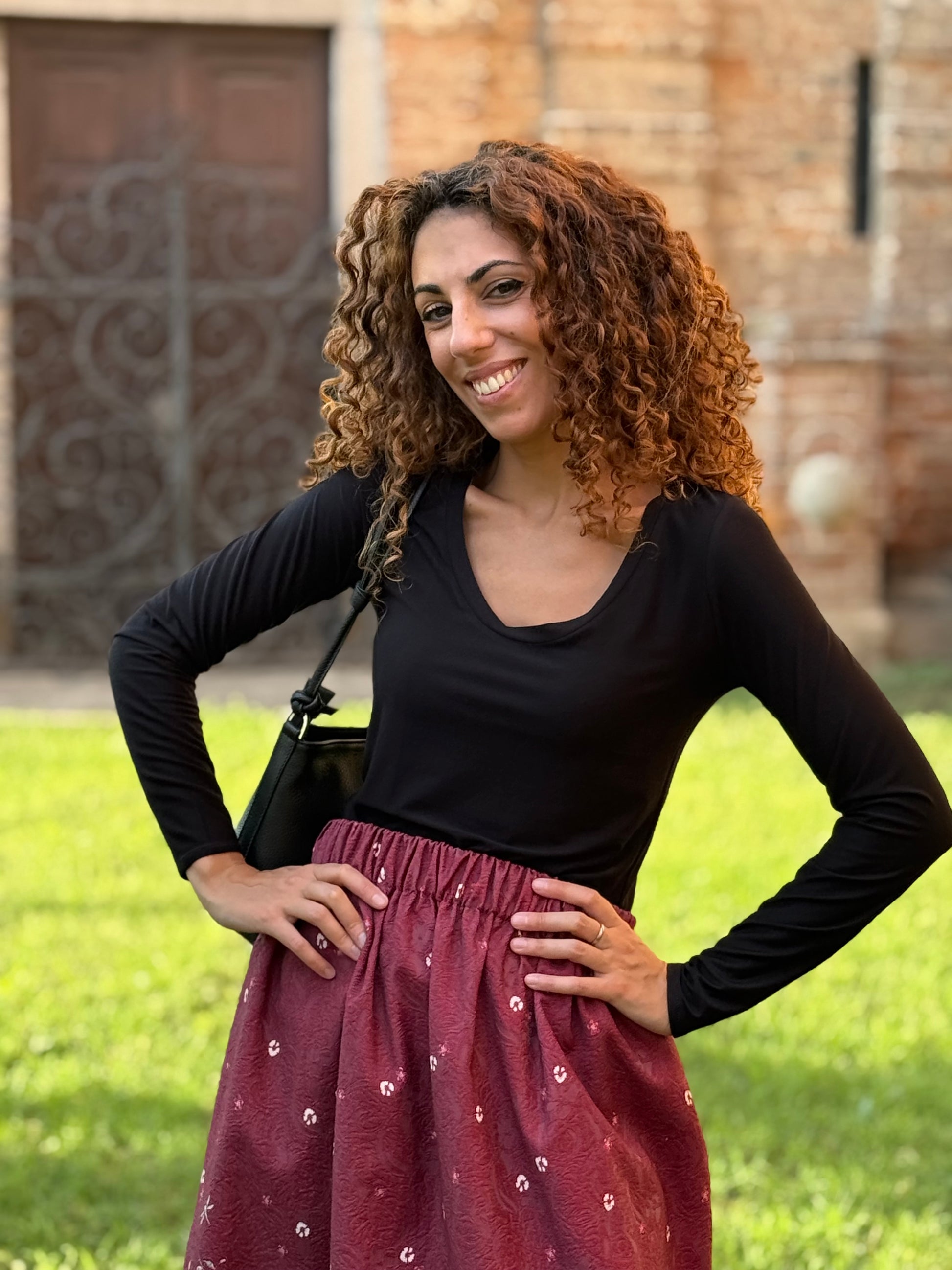 Realizzata a mano in jersey 96% Bambù 4% Elastan
