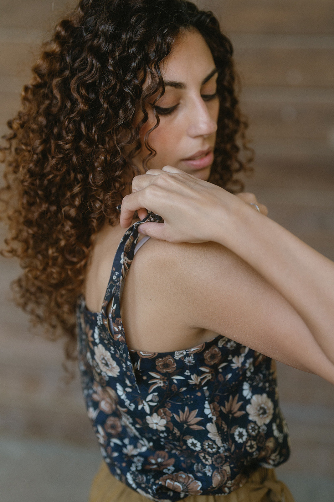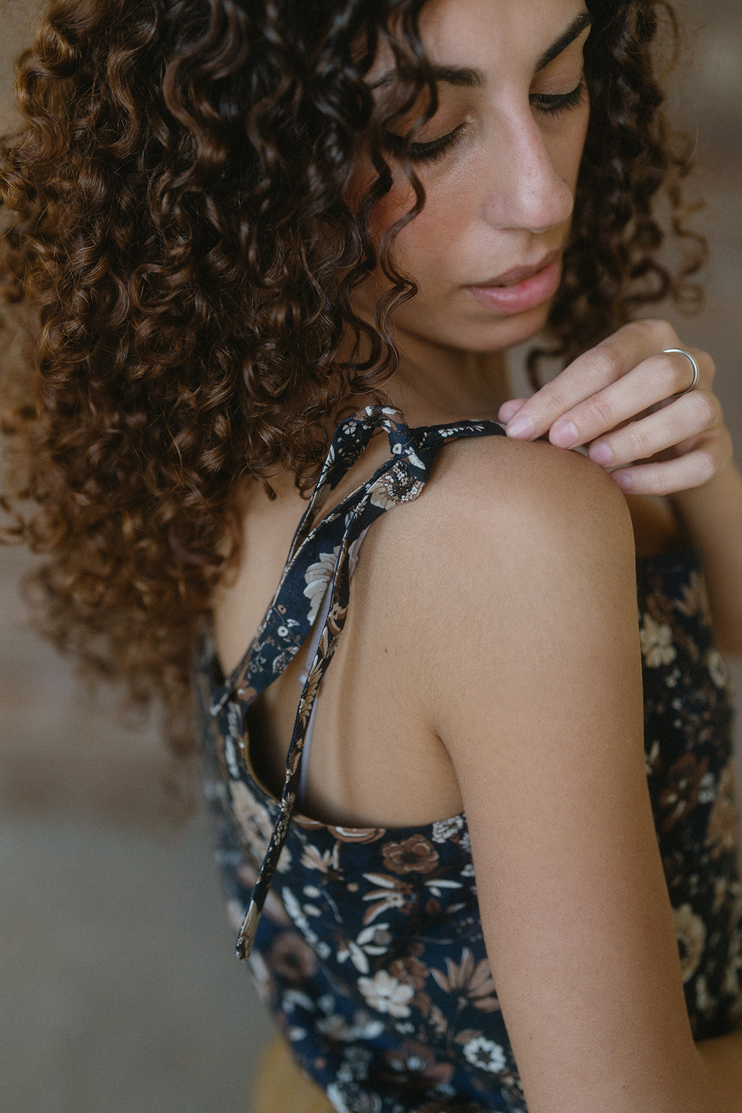 Ispirato all’omonimo abito, questo top leggermente svasato si adatta alla silhouette delicatamente e con un semplice nodino puoi regolare la lunghezza delle spalline per trovare il miglior comfort.