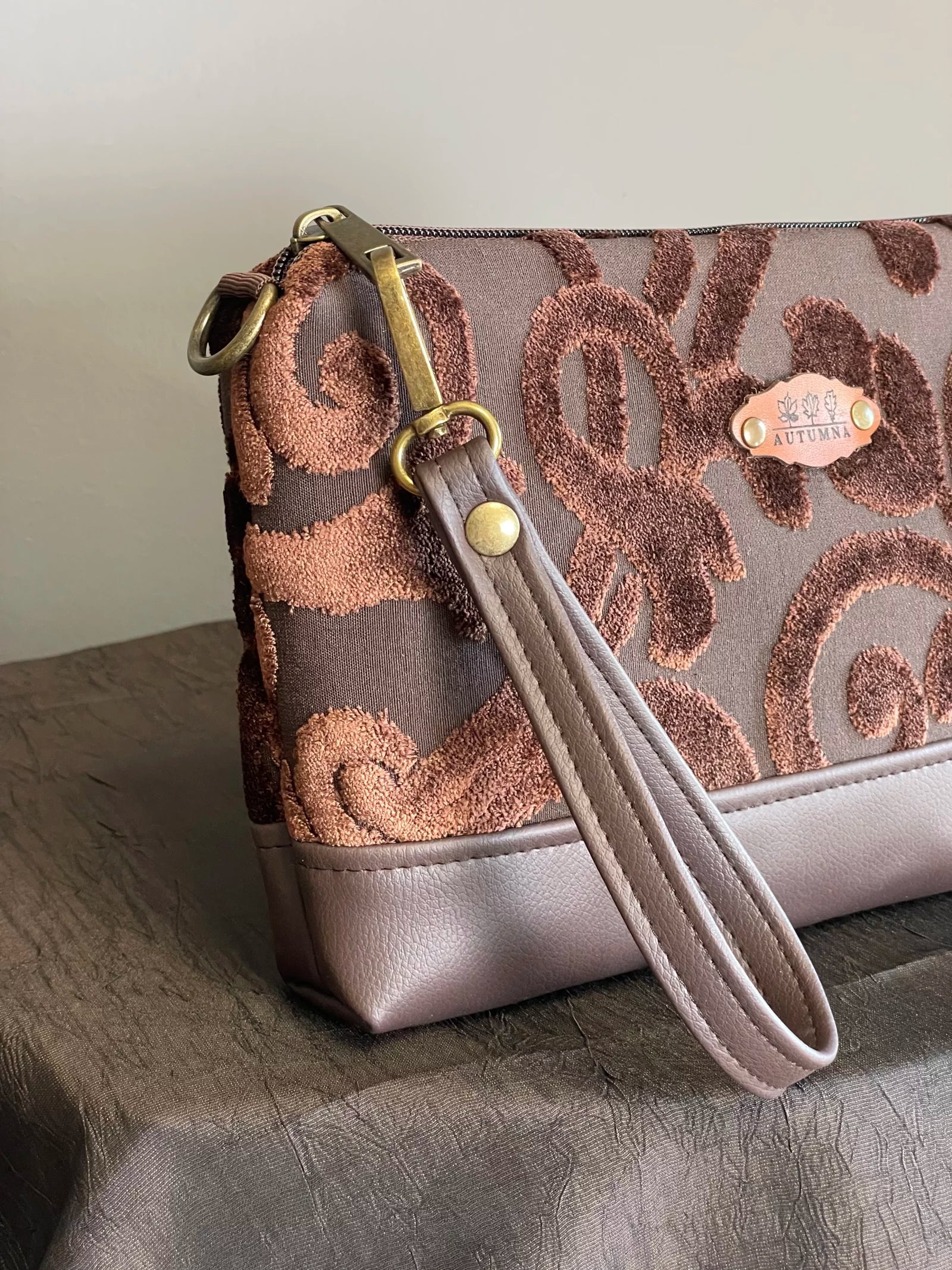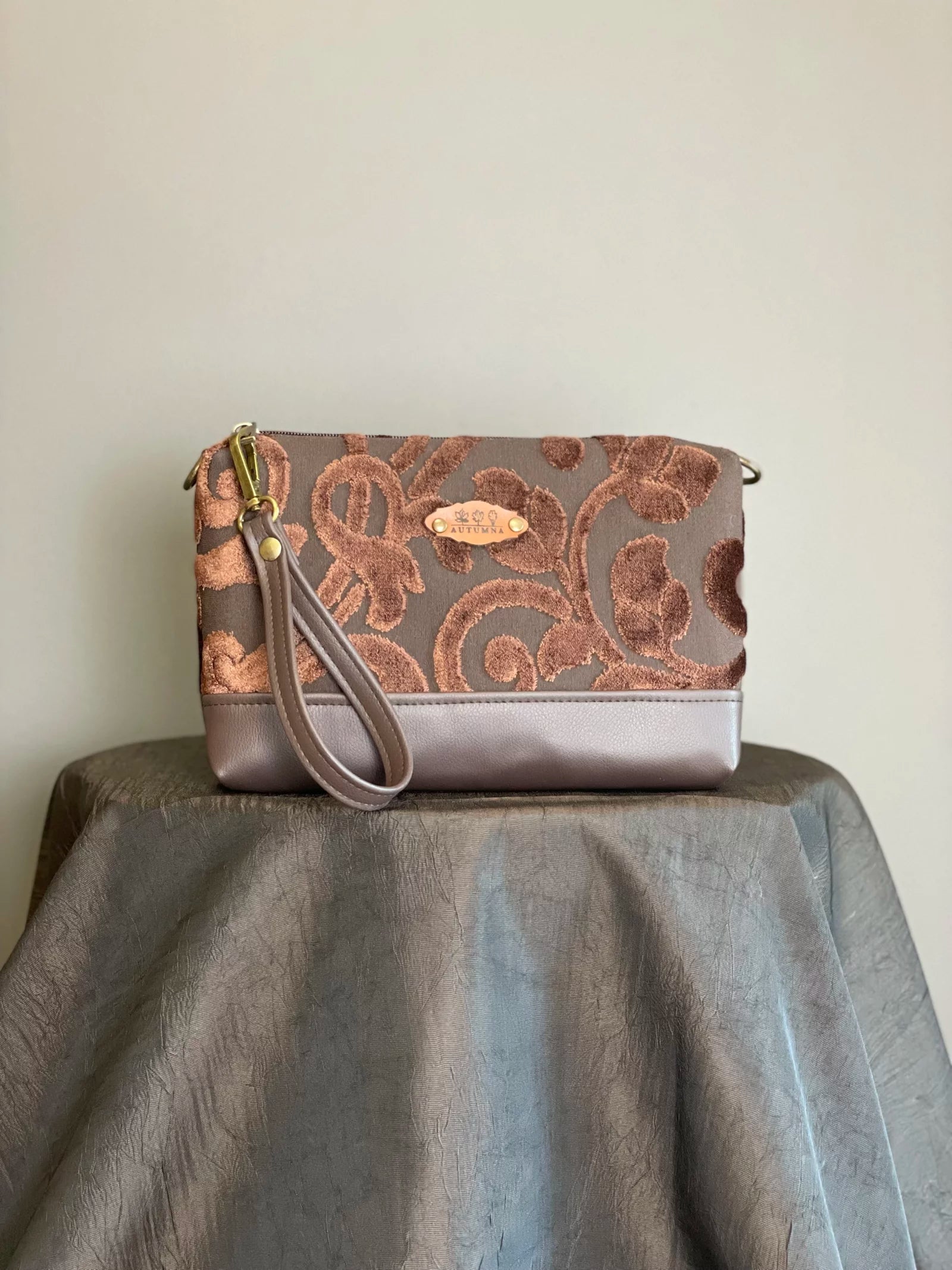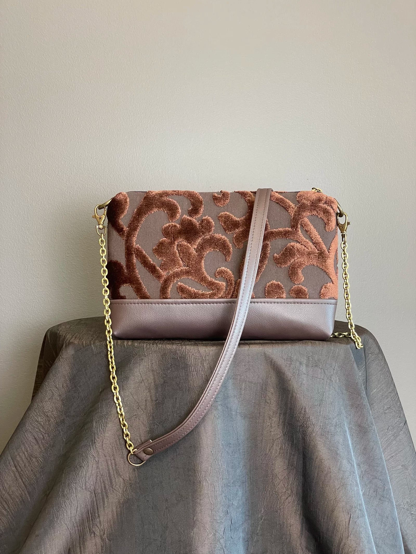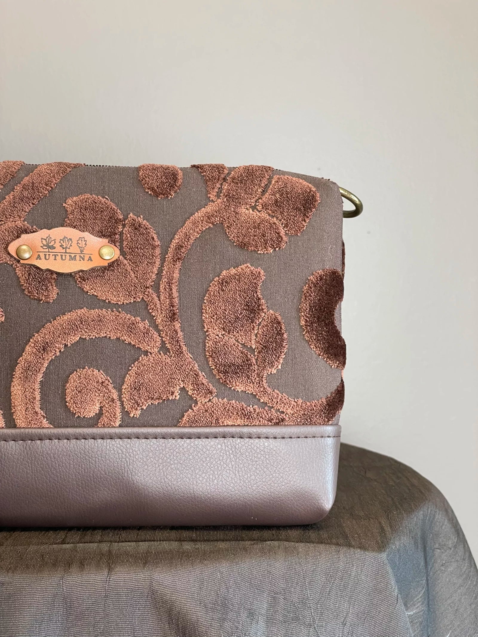 Realizzata a mano in tessuto d’arredamento e similpelle.