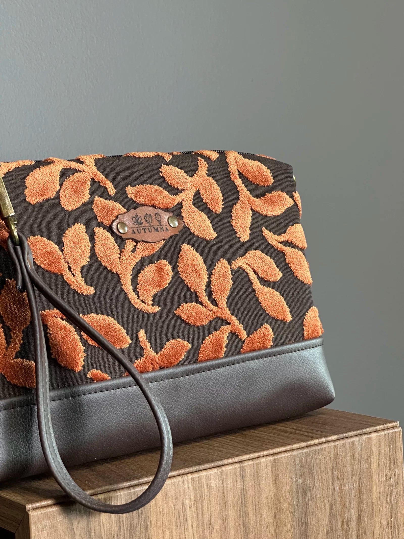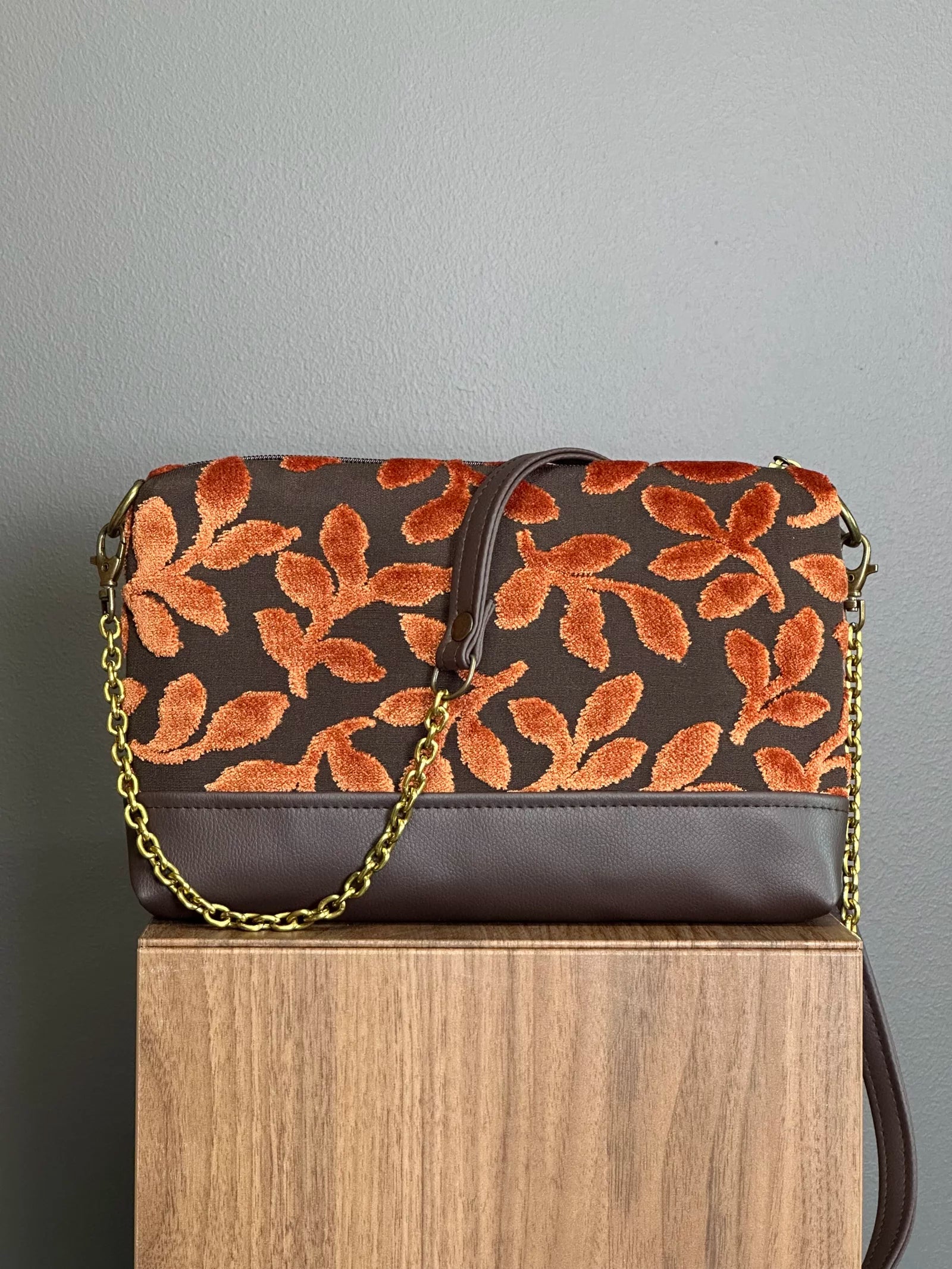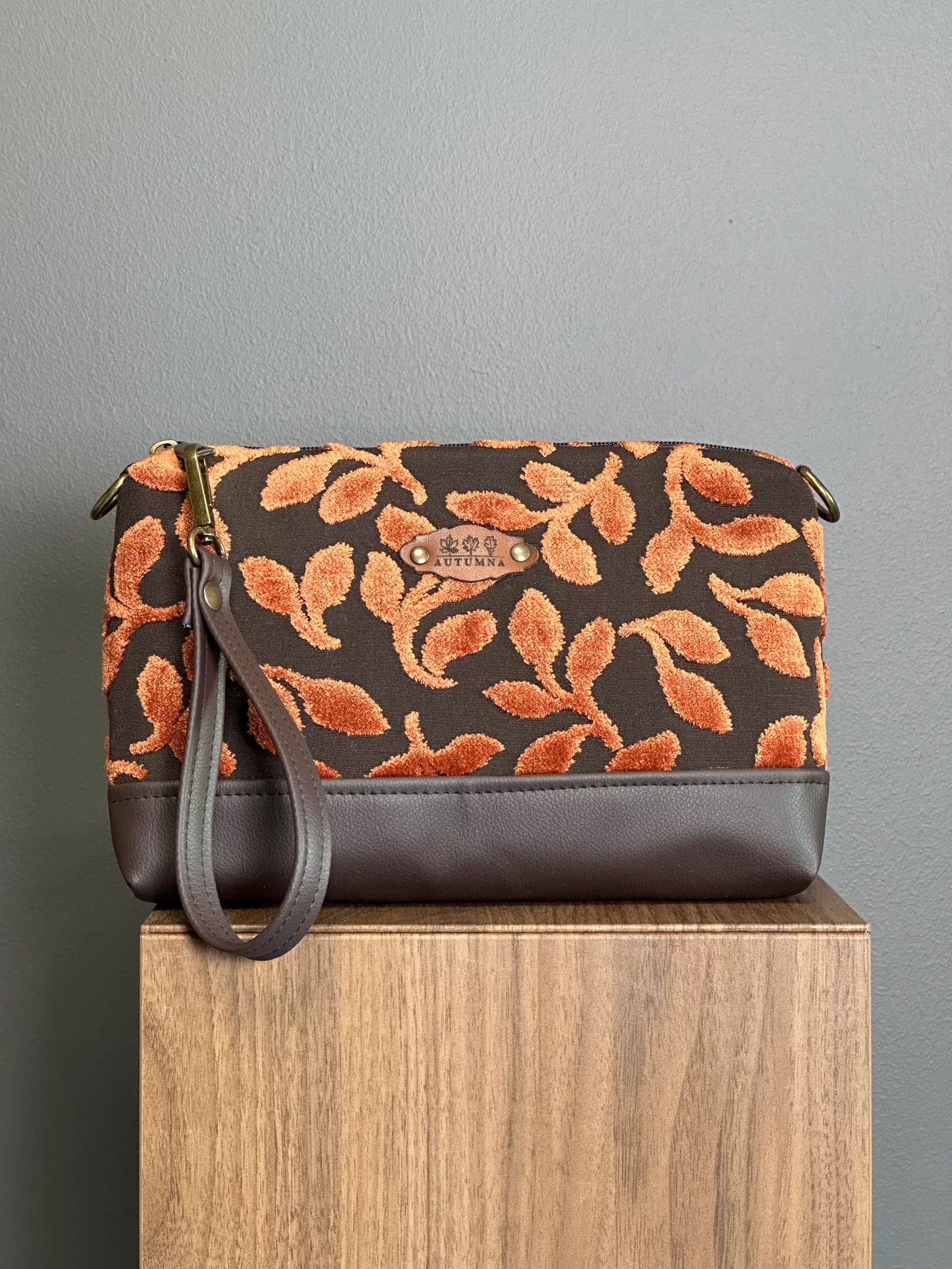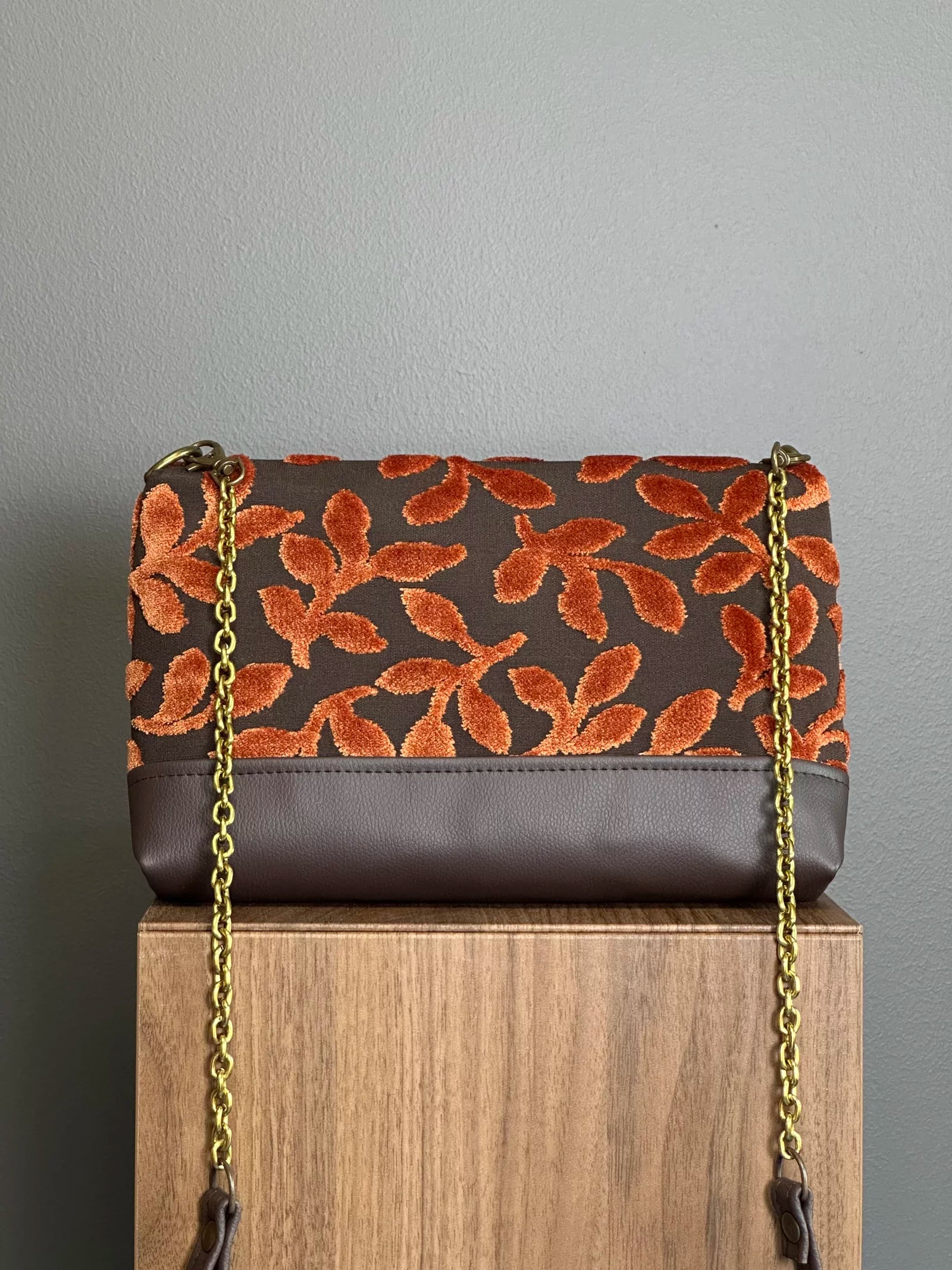 Realizzata a mano in tessuto d’arredamento e similpelle.