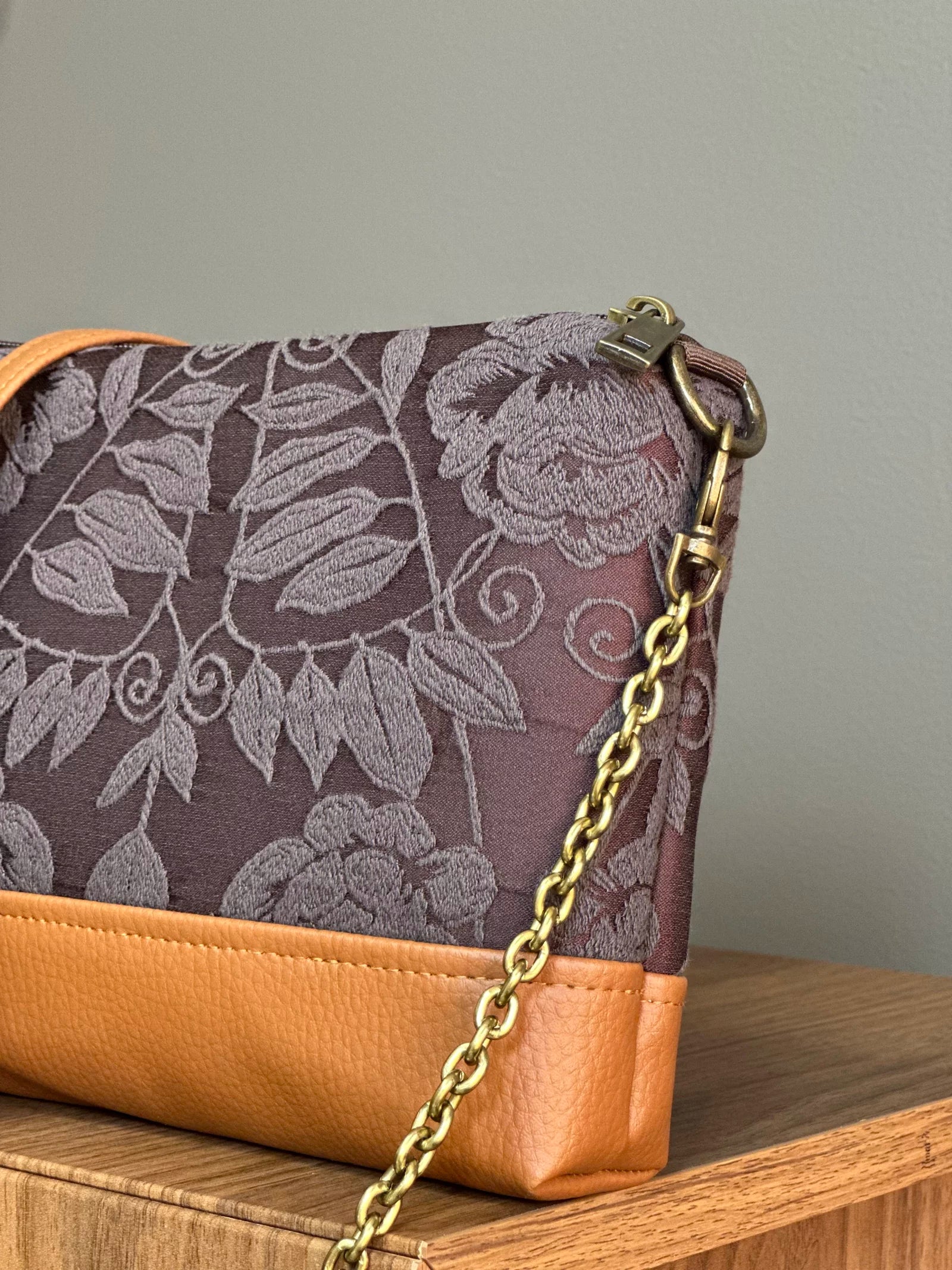 Realizzata a mano in tessuto d’arredamento e similpelle.