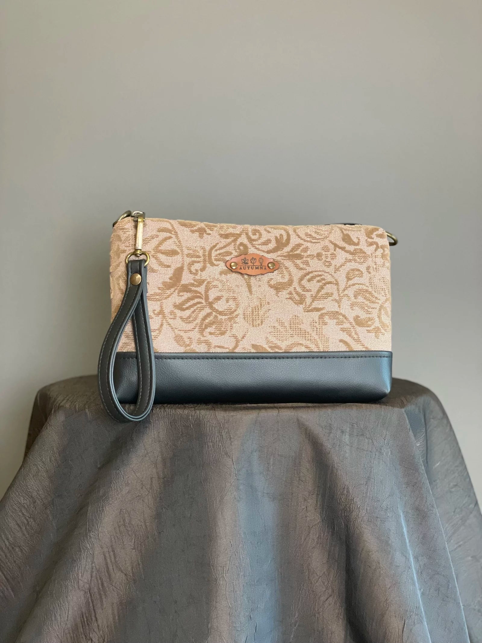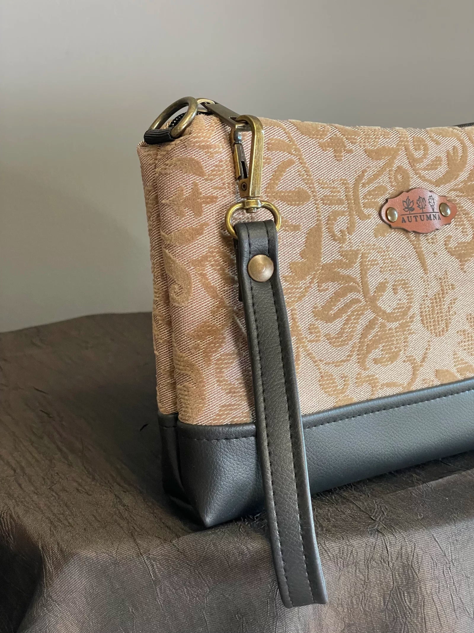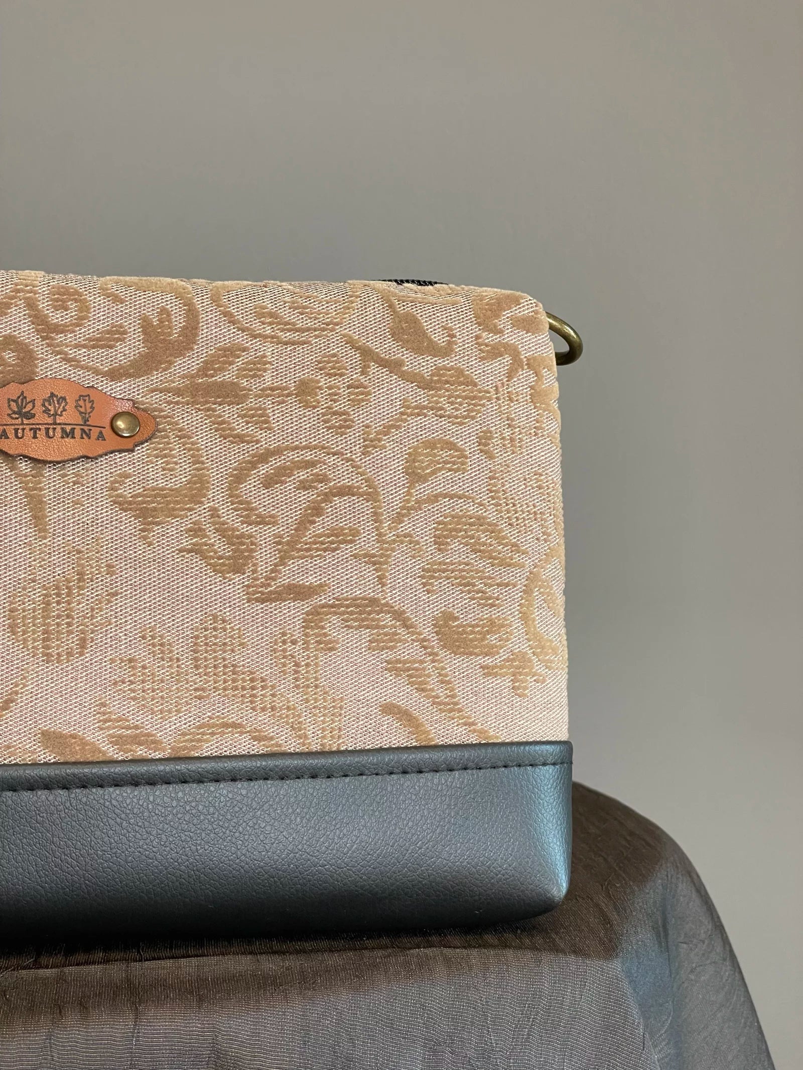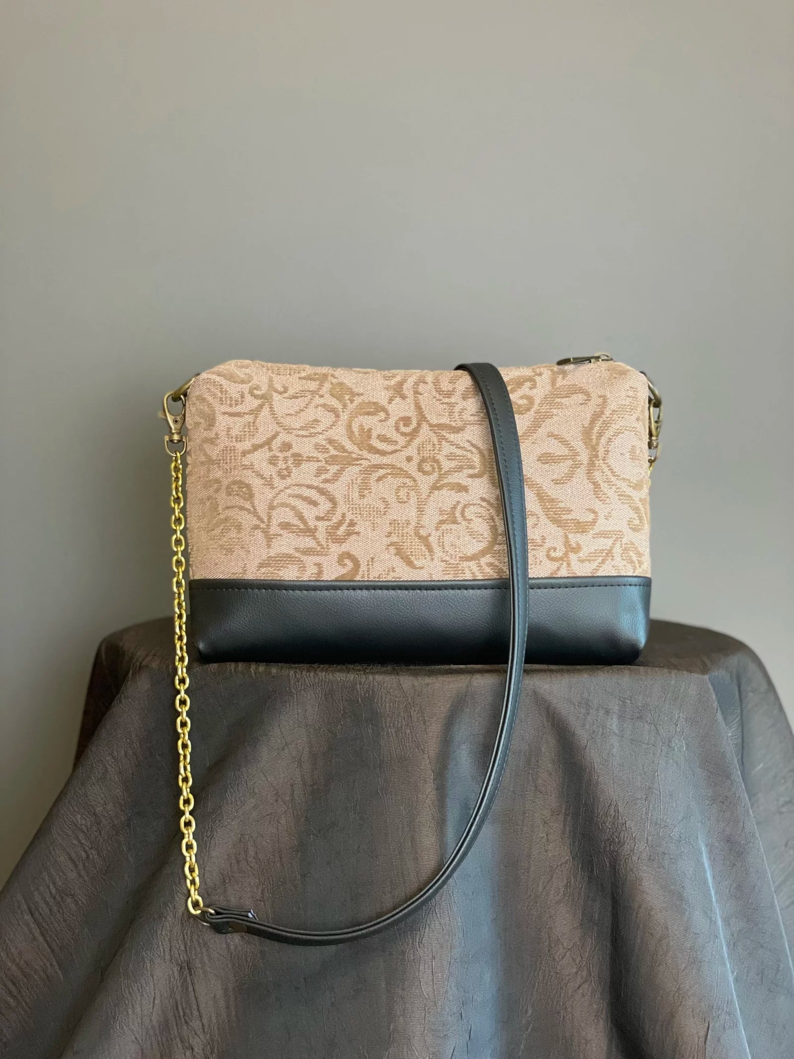 Realizzata a mano in tessuto d’arredamento e similpelle.