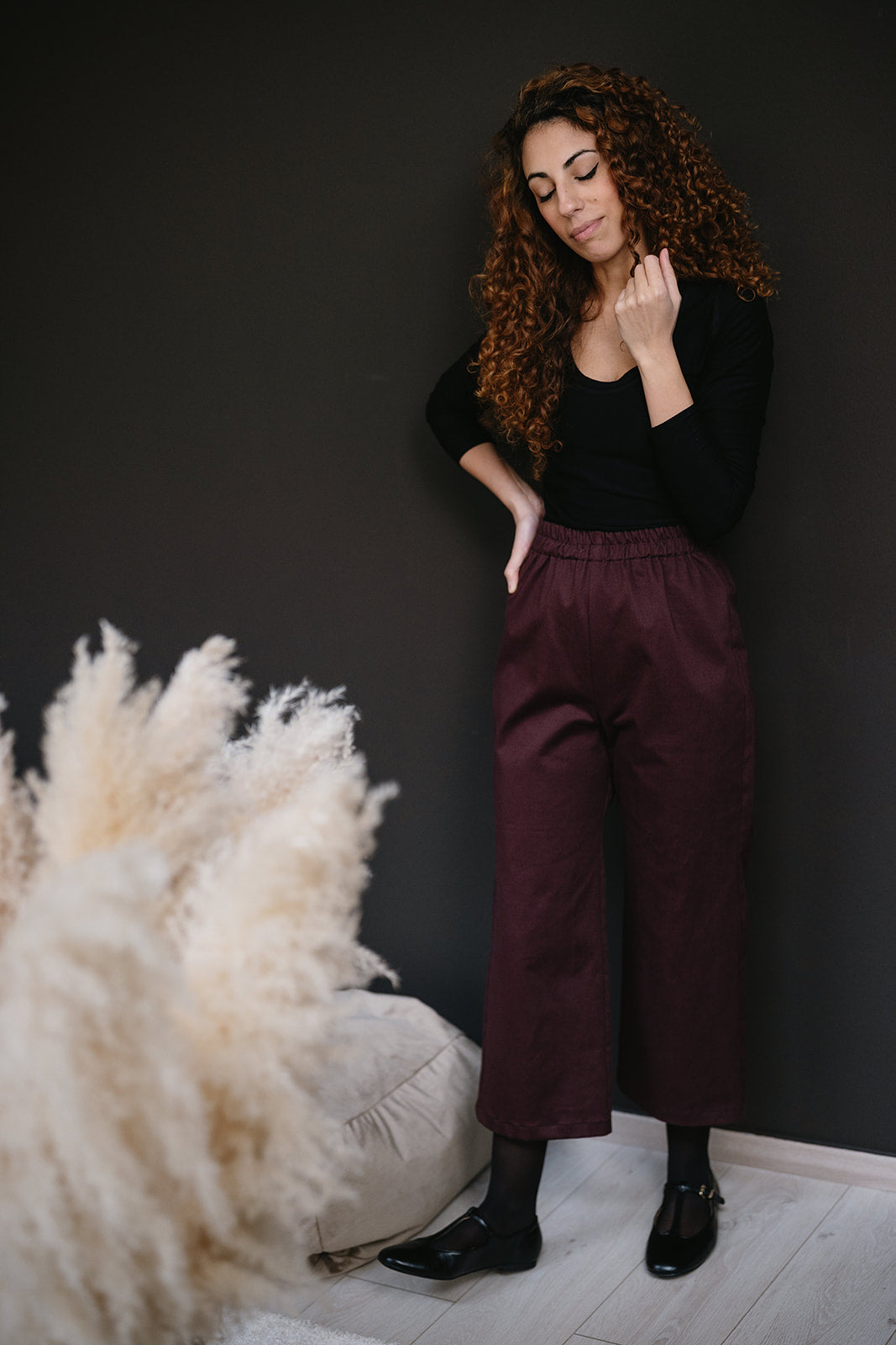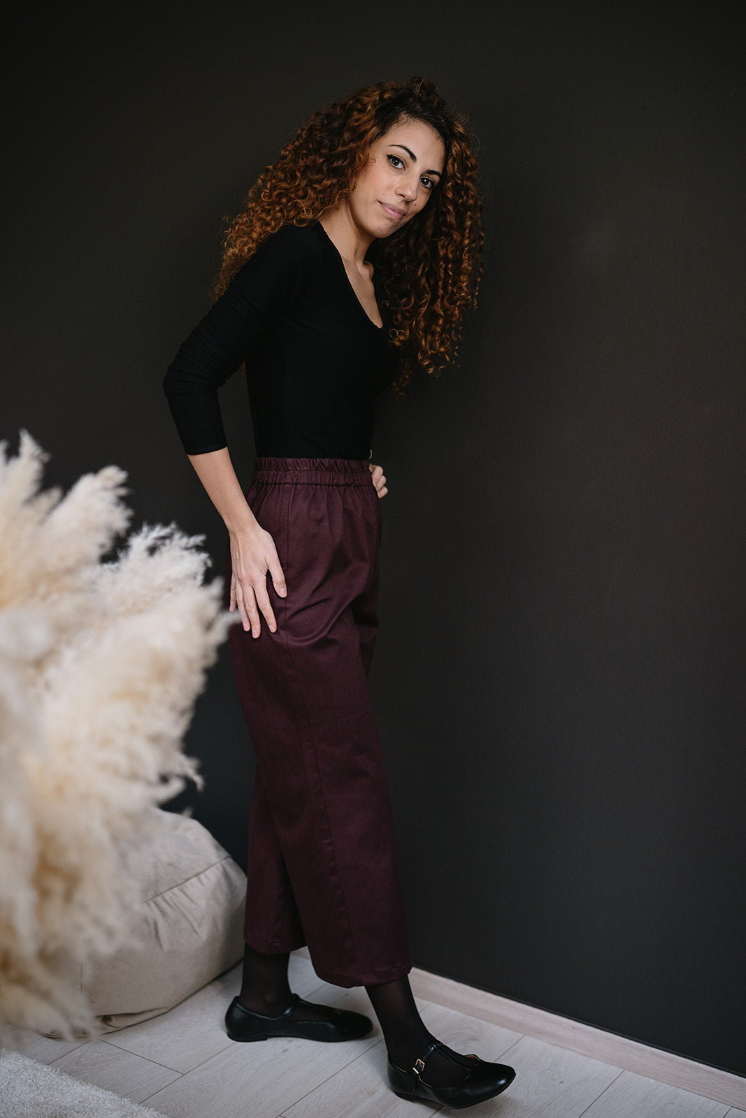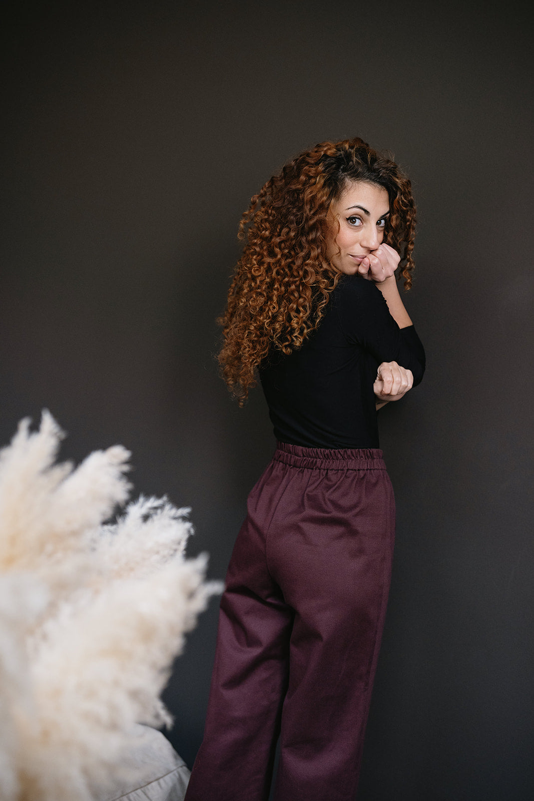 Il pantalone immancabile nel guardaroba. Vita elasticizzata, fianchi delineati e una gamba ampia ma non troppo, per esprimere un look dinamico, comodo e sempre elegante.
