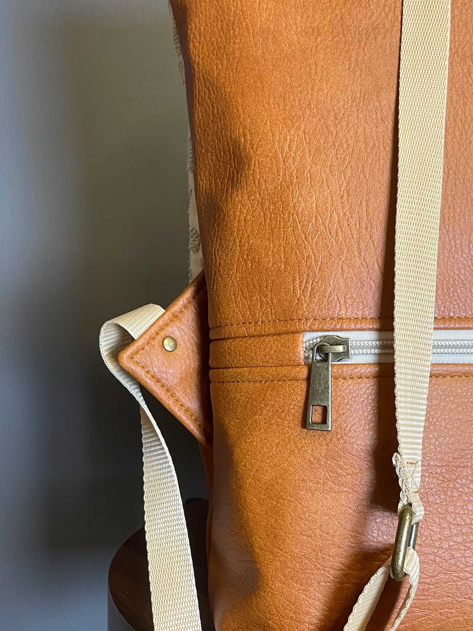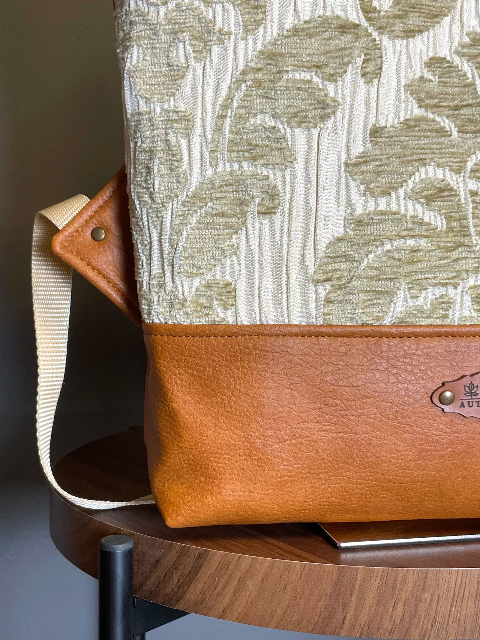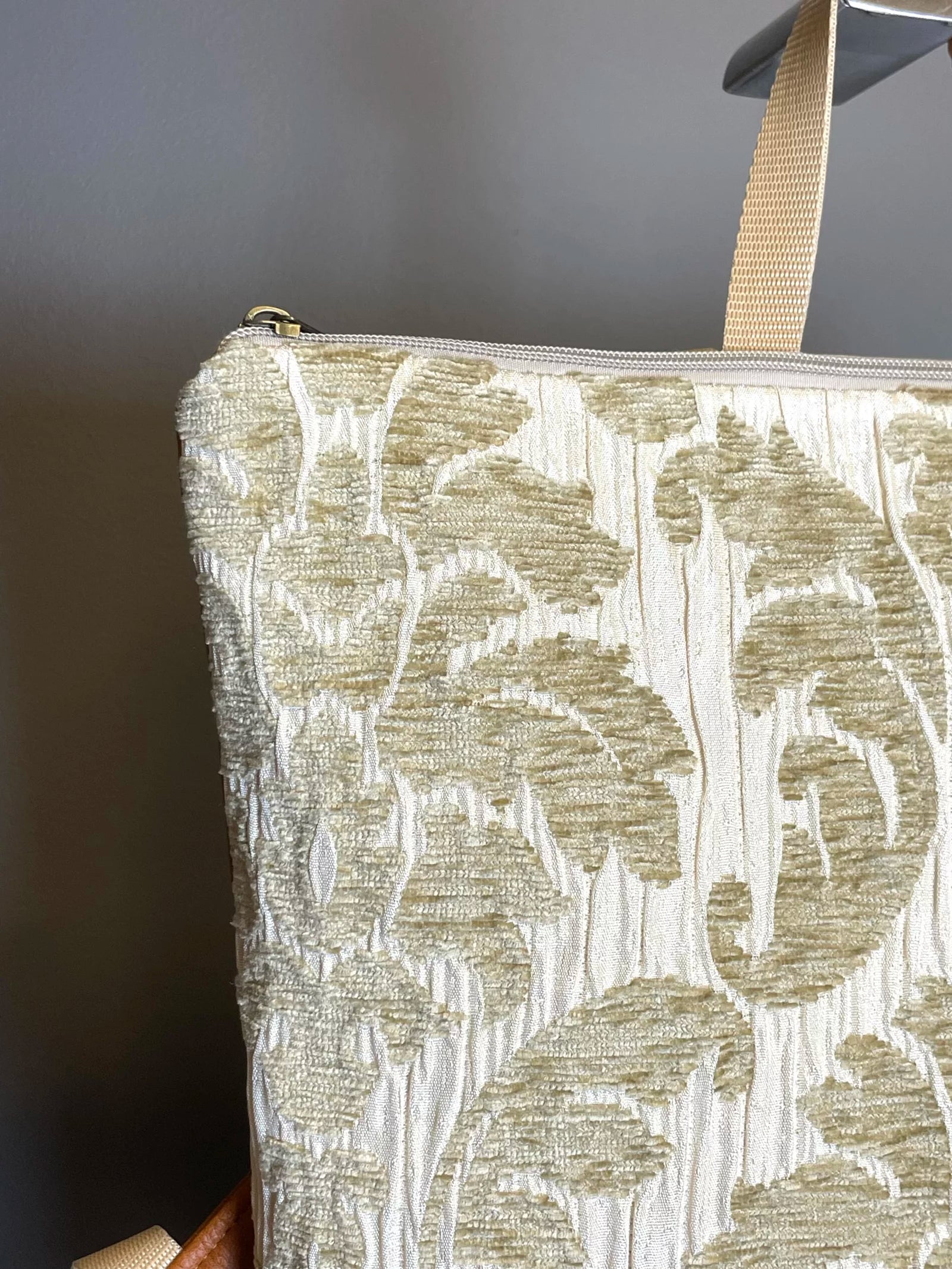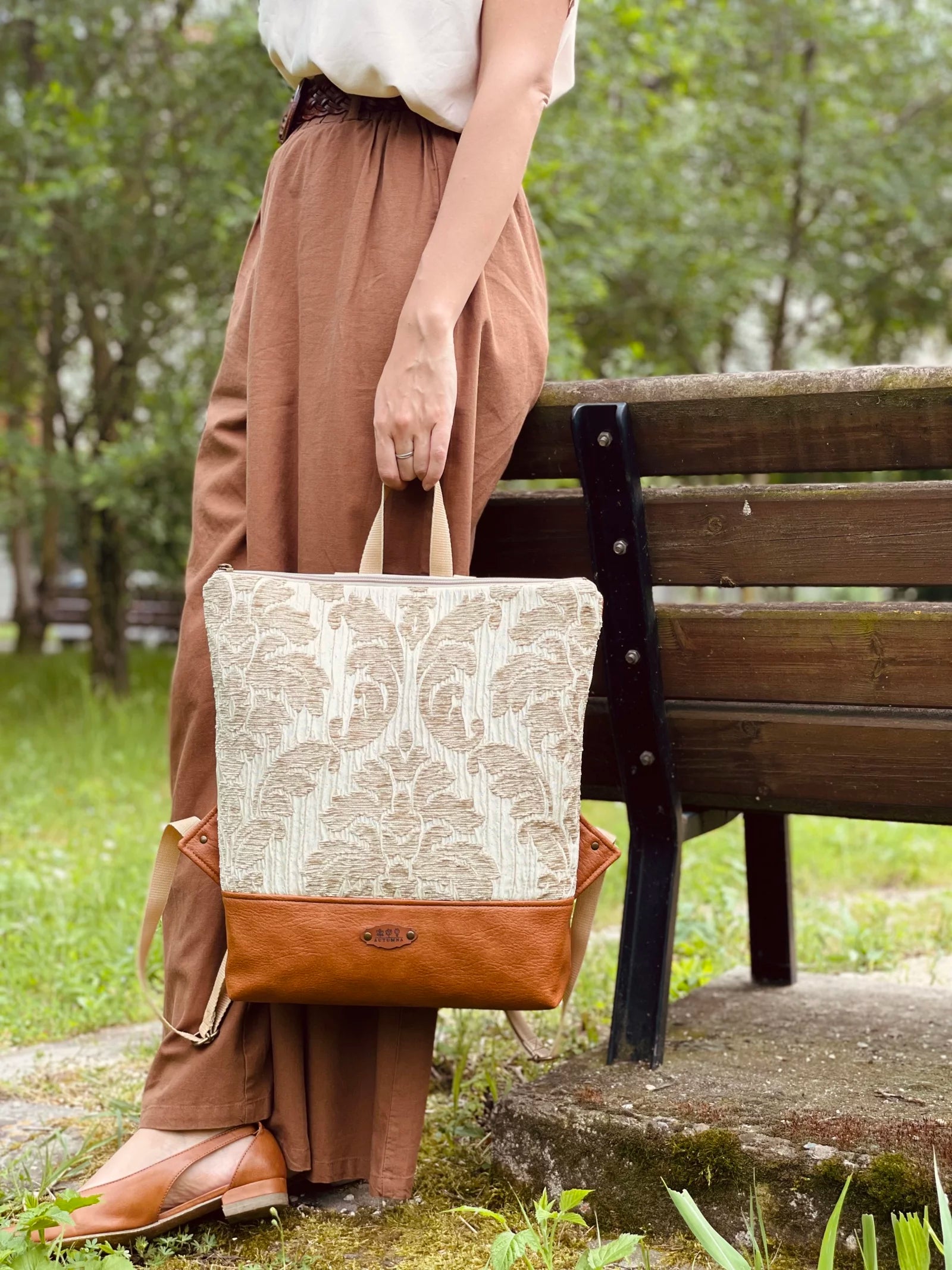 Realizzato a mano in tessuto d'arredamento e similpelle.