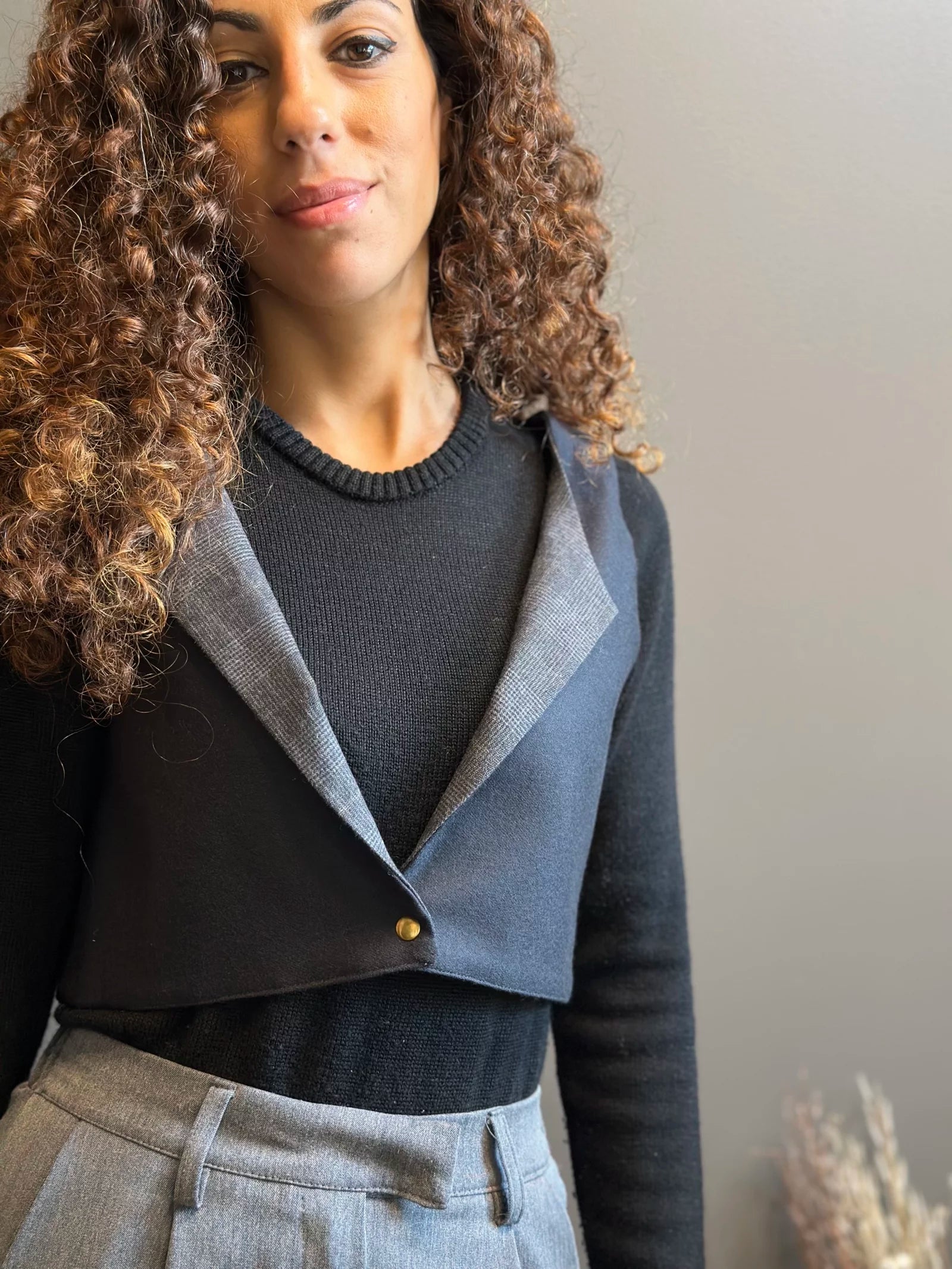 La sua caratteristica reversibile ti permette di trasformare l'outfit in un istante, scegliendo tra tre look diversi in un unico capo. È perfetto sia per abbinamenti casual che per occasioni speciali, donando sempre un tocco raffinato.