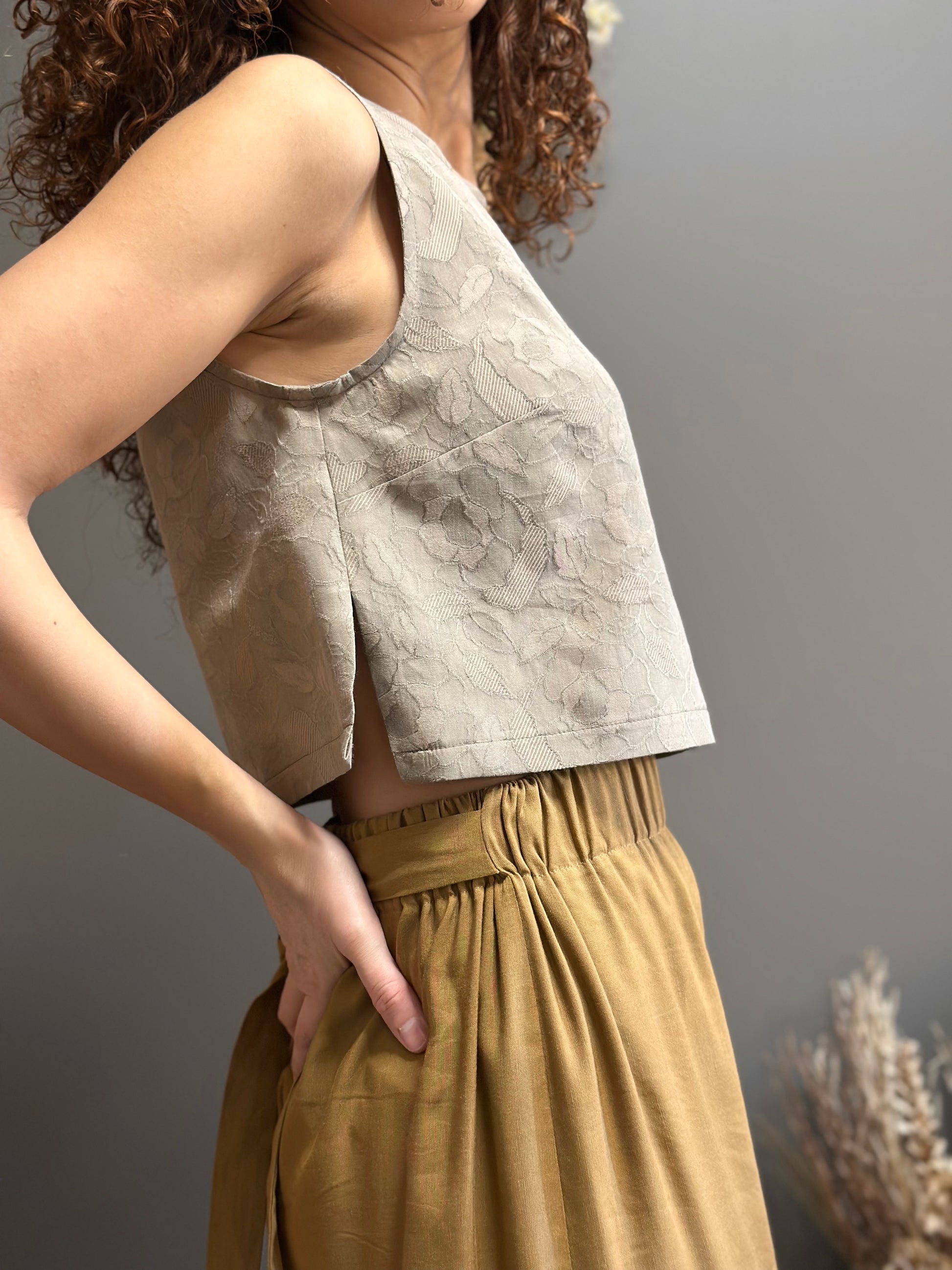 E’ quel top che sta bene con tutto, semplice ma d’effetto e puoi scegliere di realizzarlo in lunghezza standard o cropped. Leggero e sinuoso, con uno spacchetto su entrambi i lati per adattarsi meglio alle forme del corpo.